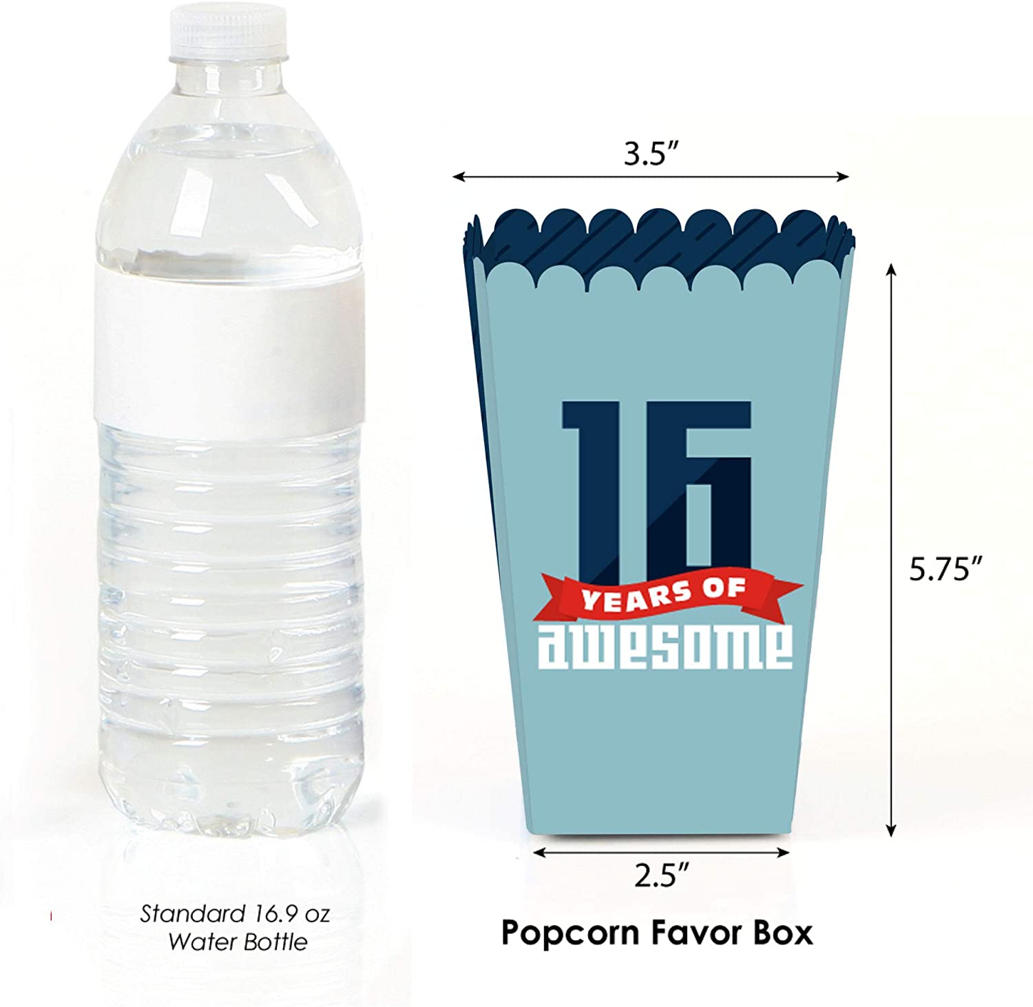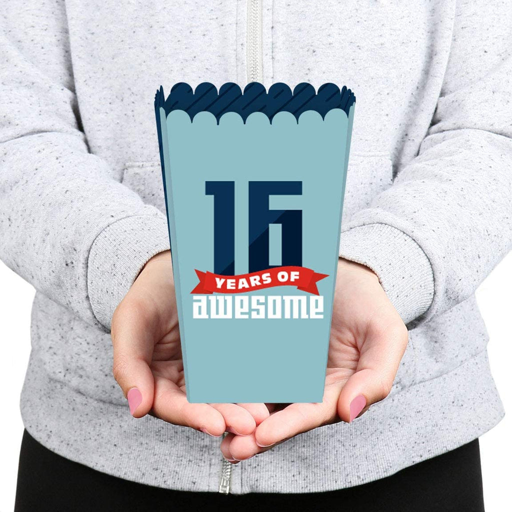 Boy 16th Birthday - Sweet Sixteen Birthday Party Favor Popcorn Treat Boxes - Set of 12