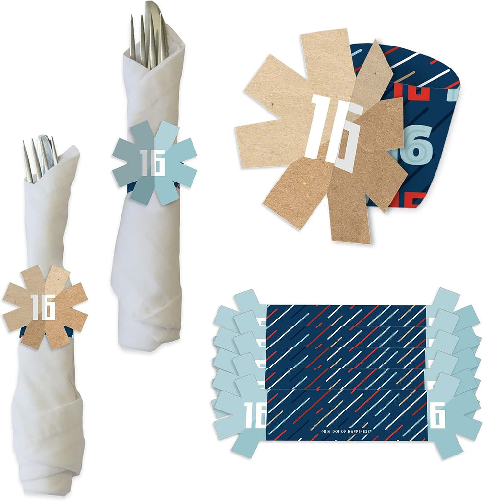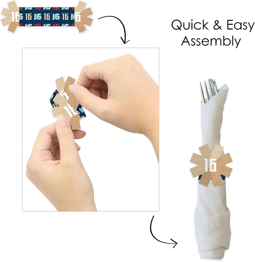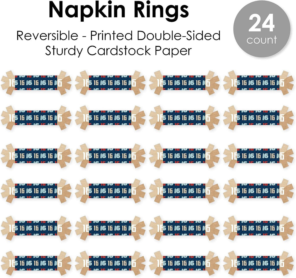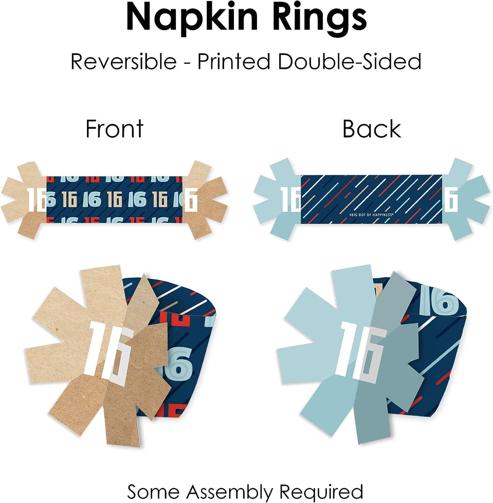 • High-Quality Supply: Boy 16th Birthday Napkin Rings are reversible and professionally printed double-sided on sturdy cardstock paper with a photo-like shine. Each paper rings measure 2.25” wide x 2.25” tall when assembled. Napkin Rings arrive flat and will require some easy assembly.