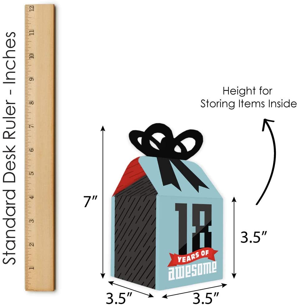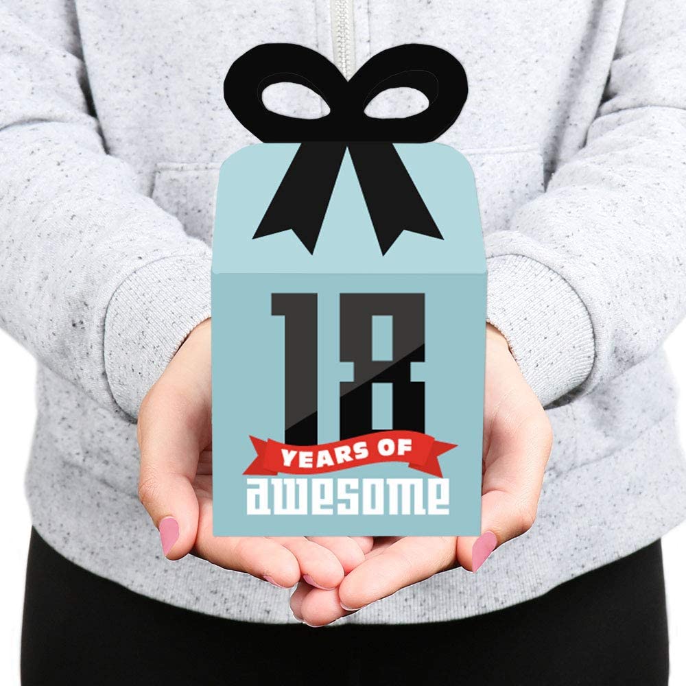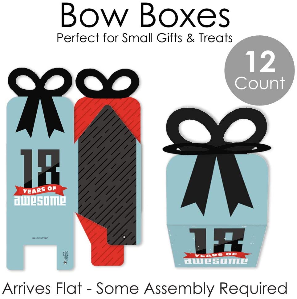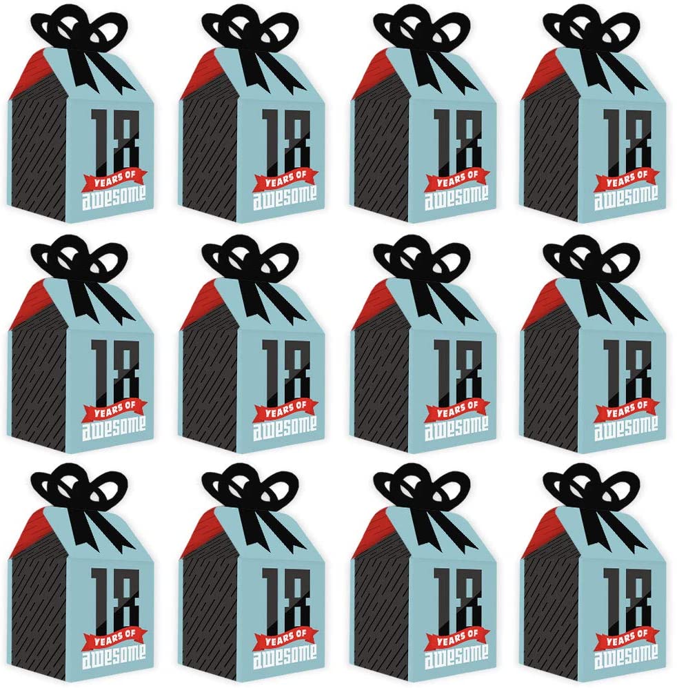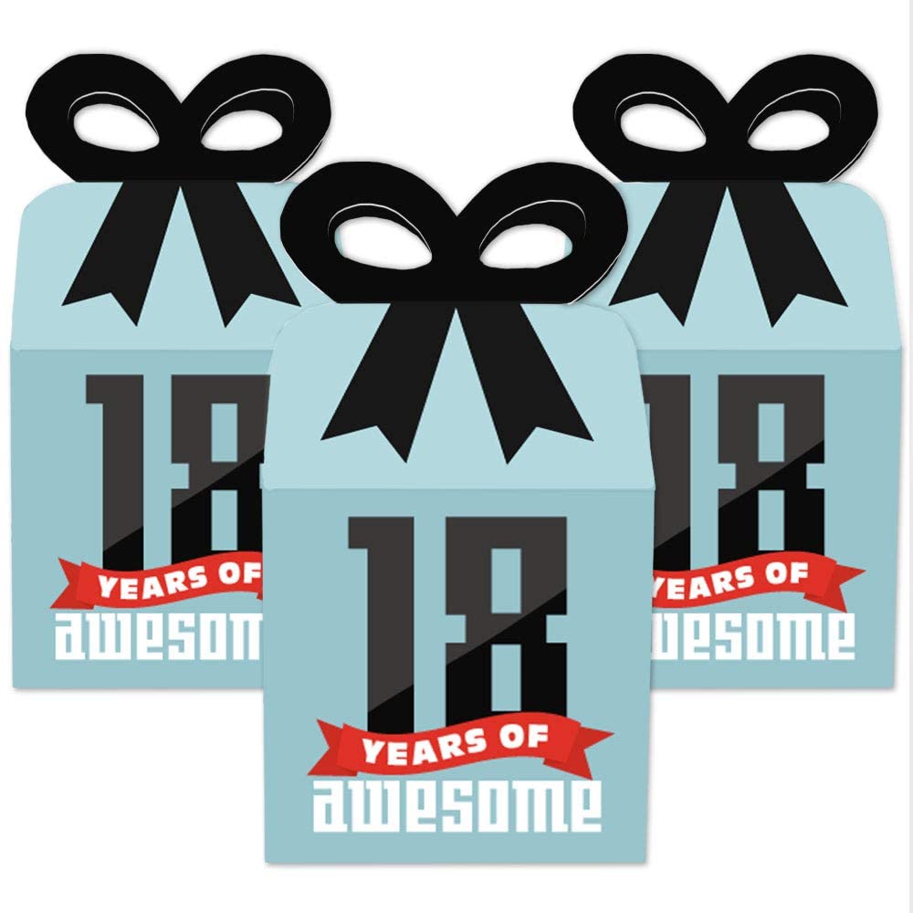 Boy 18th Birthday - Square Favor Gift Boxes - Eighteenth Birthday Party Bow Boxes - Set of 12 is backordered and will ship as soon as it is back in stock.