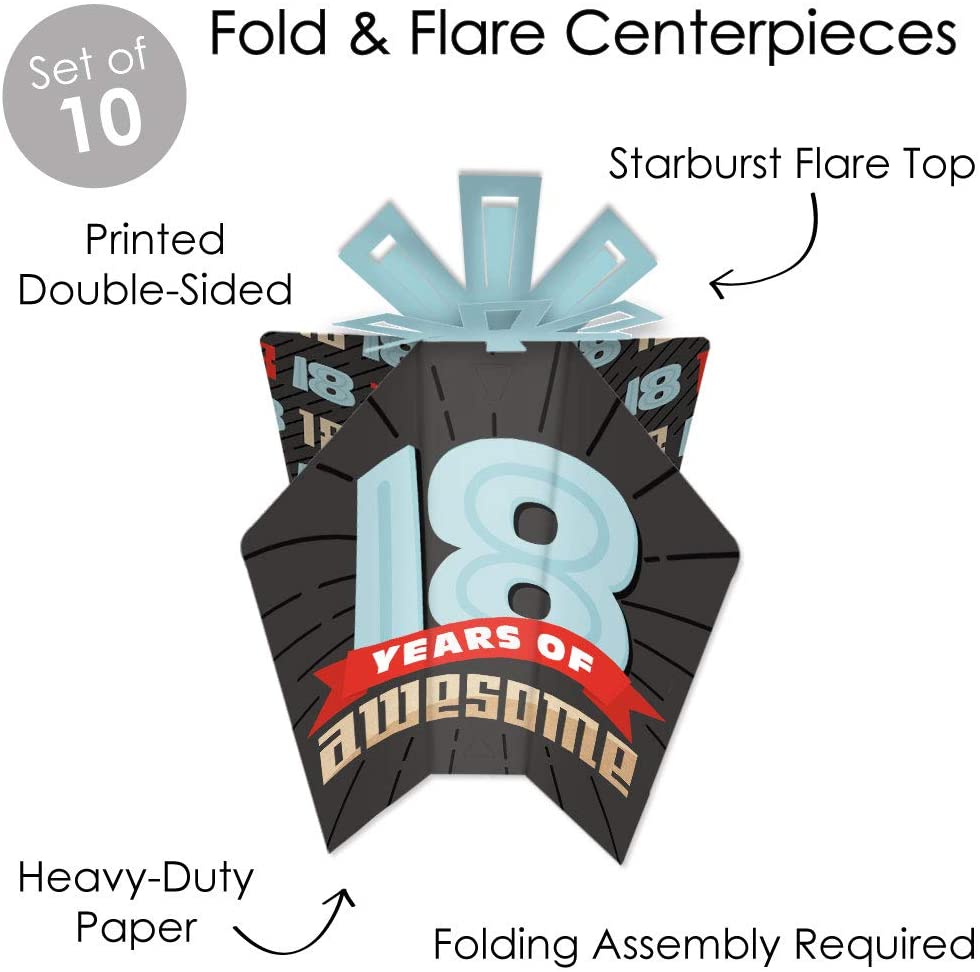 Boy 18th Birthday - Table Decorations - Eighteenth Birthday Party Fold and Flare Centerpieces - 10 Count is backordered and will ship as soon as it is back in stock.