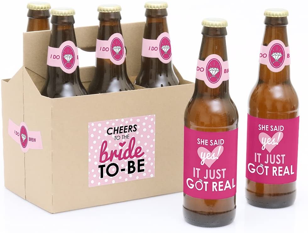 Bride-To-Be - Bridal Shower & Classy Bachelorette Party Decorations for Women - 6 Beer Bottle Label Stickers and 1 Carrier is backordered and will ship as soon as it is back in stock.