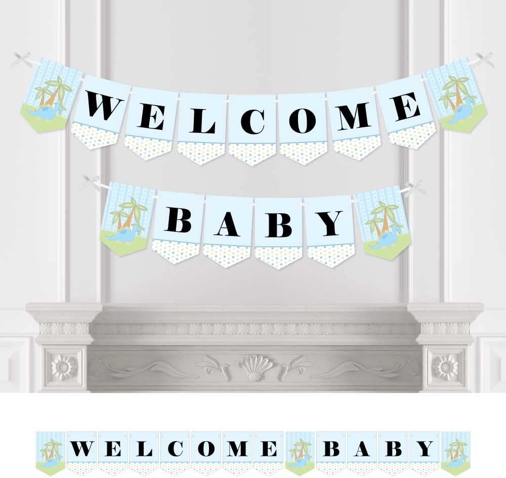 Baby Boy Dinosaur - Custom Baby Shower Bunting Banner & Decorations - Welcome Baby Custom Name Banner is backordered and will ship as soon as it is back in stock.