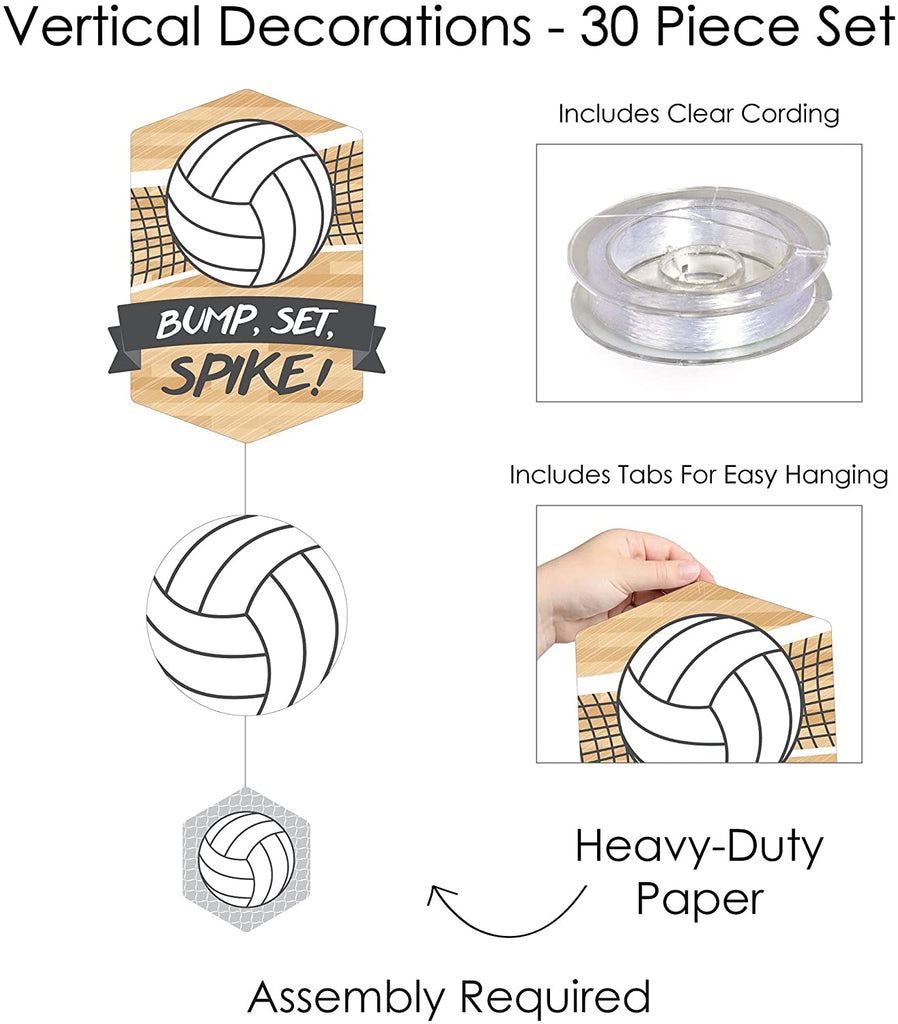Bump, Set, Spike - Volleyball - Baby Shower or Birthday Party DIY Dangler Backdrop - Hanging Vertical Decorations - 30 Pieces is backordered and will ship as soon as it is back in stock.
