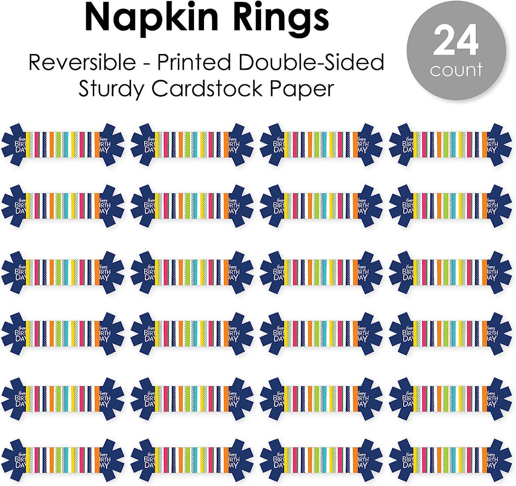 Cheerful Happy Birthday - Colorful Birthday Party Paper Napkin Holder - Napkin Rings - Set of 24 is backordered and will ship as soon as it is back in stock.