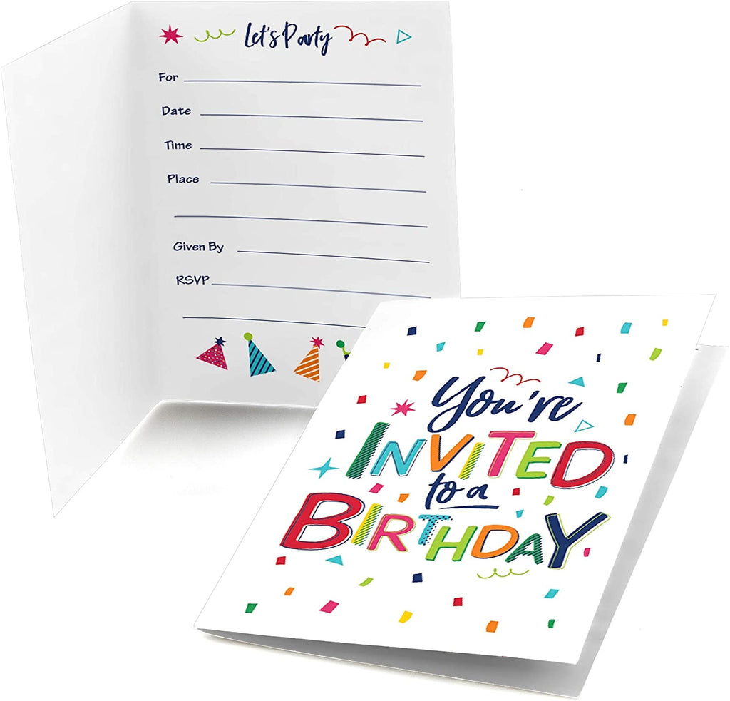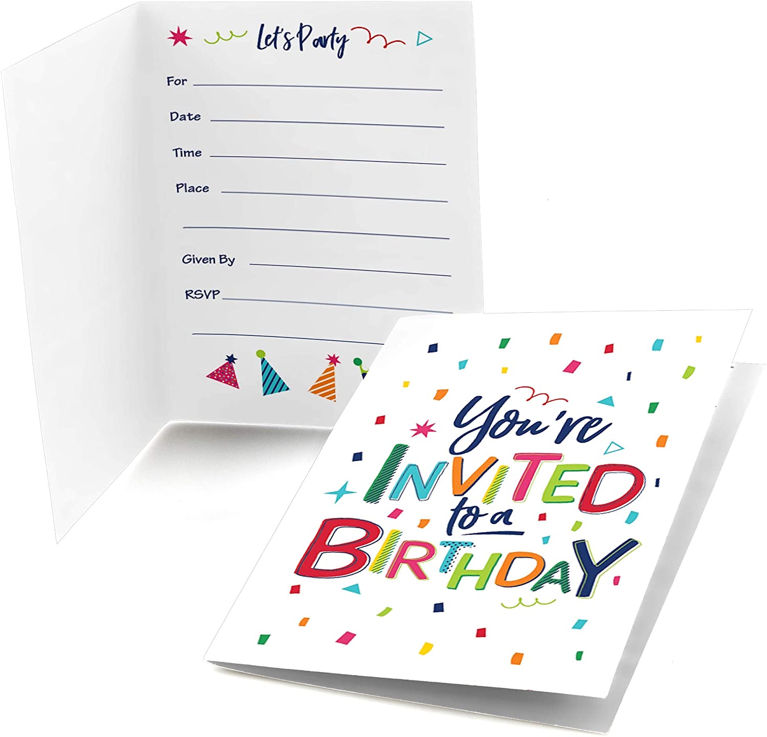 Cheerful Happy Birthday - Fill In Colorful Birthday Party Invitations (8 count) is backordered and will ship as soon as it is back in stock.