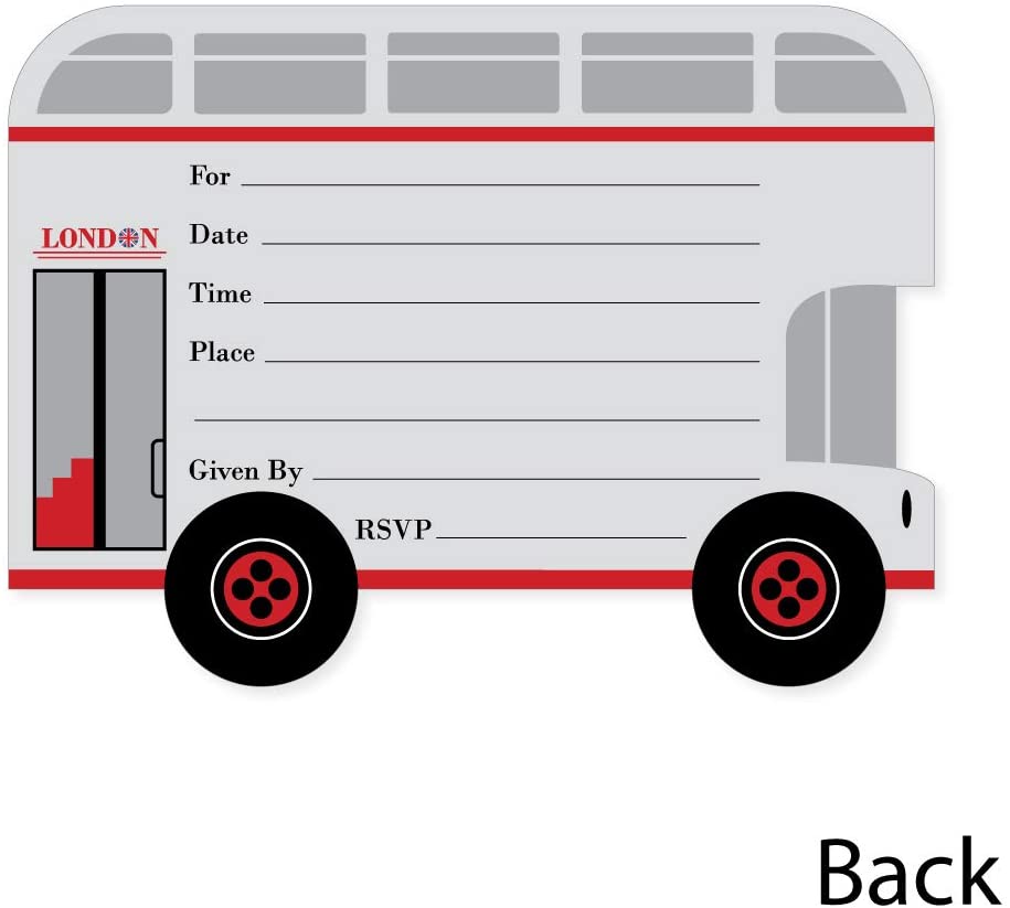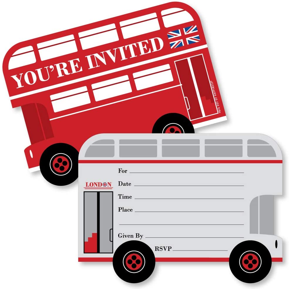 Cheerio, London - Shaped Fill-In Invitations - British UK Party Invitation Cards with Envelopes - Set of 12 is backordered and will ship as soon as it is back in stock.