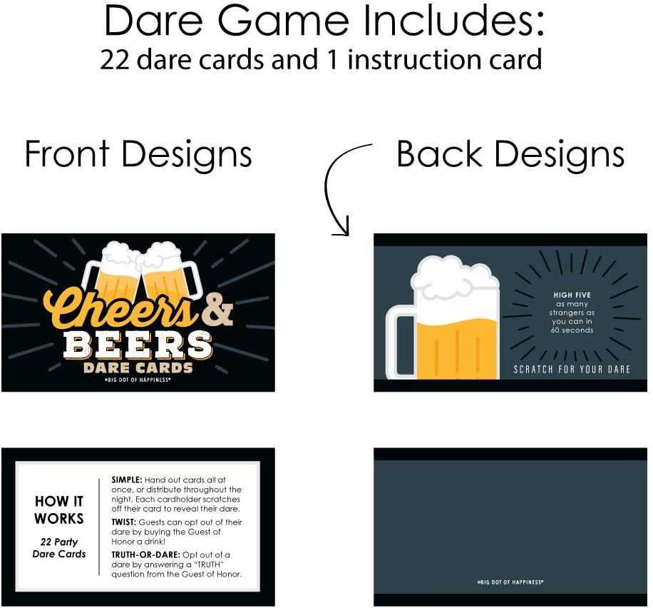 Cheers and Beers Happy Birthday - Birthday Party Game Scratch Off Dare Cards - 22 Count is backordered and will ship as soon as it is back in stock.