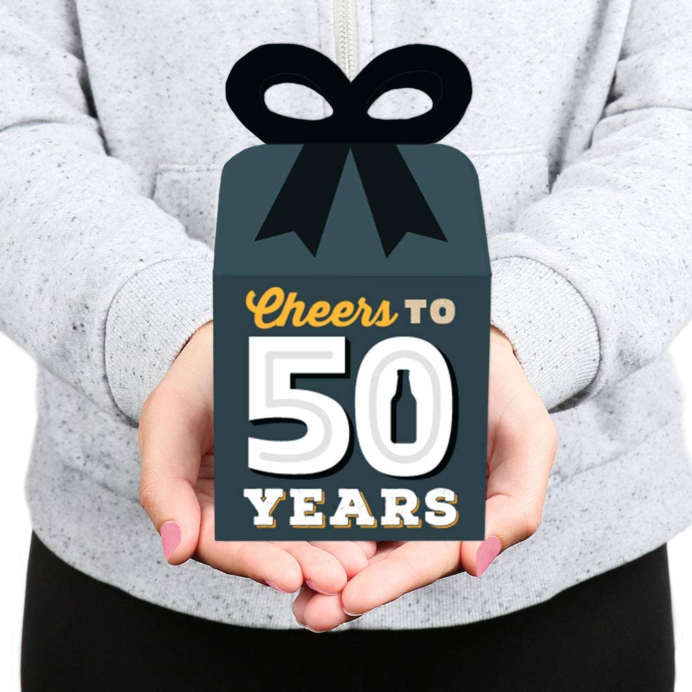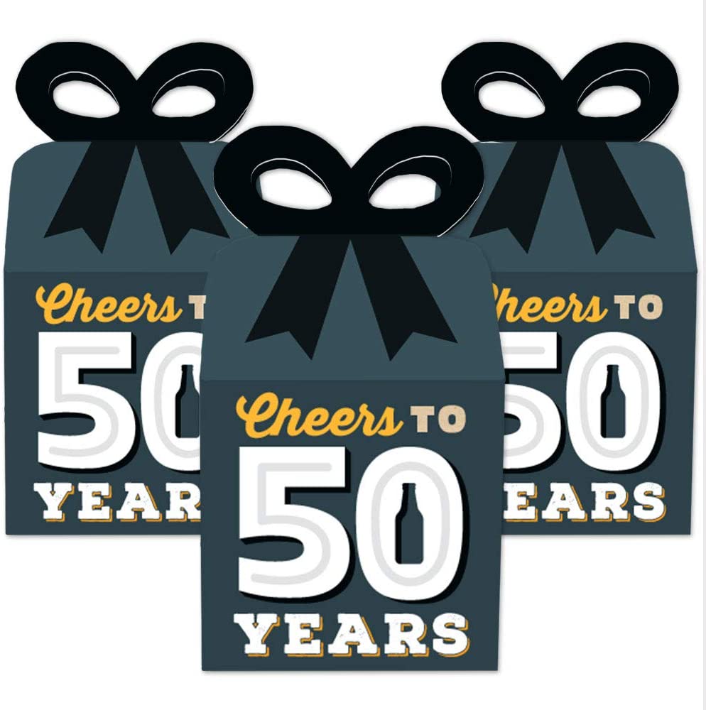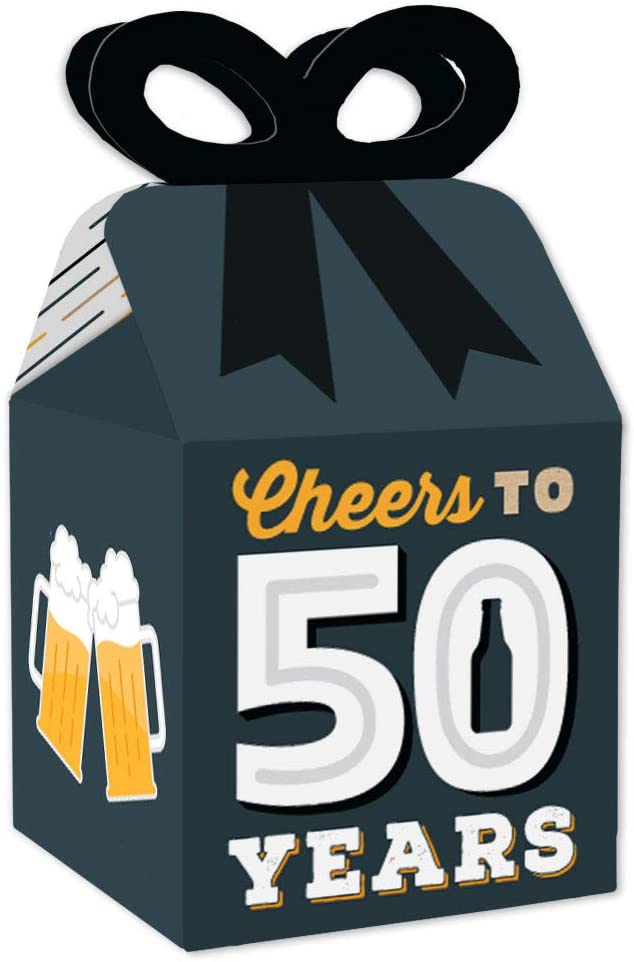 Cheers and Beers to 50 Years - Square Favor Gift Boxes - 50th Birthday Party Bow Boxes - Set of 12 is backordered and will ship as soon as it is back in stock.