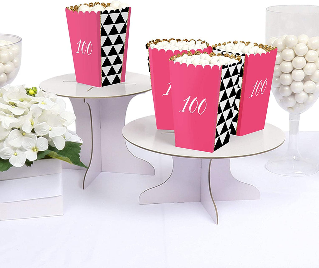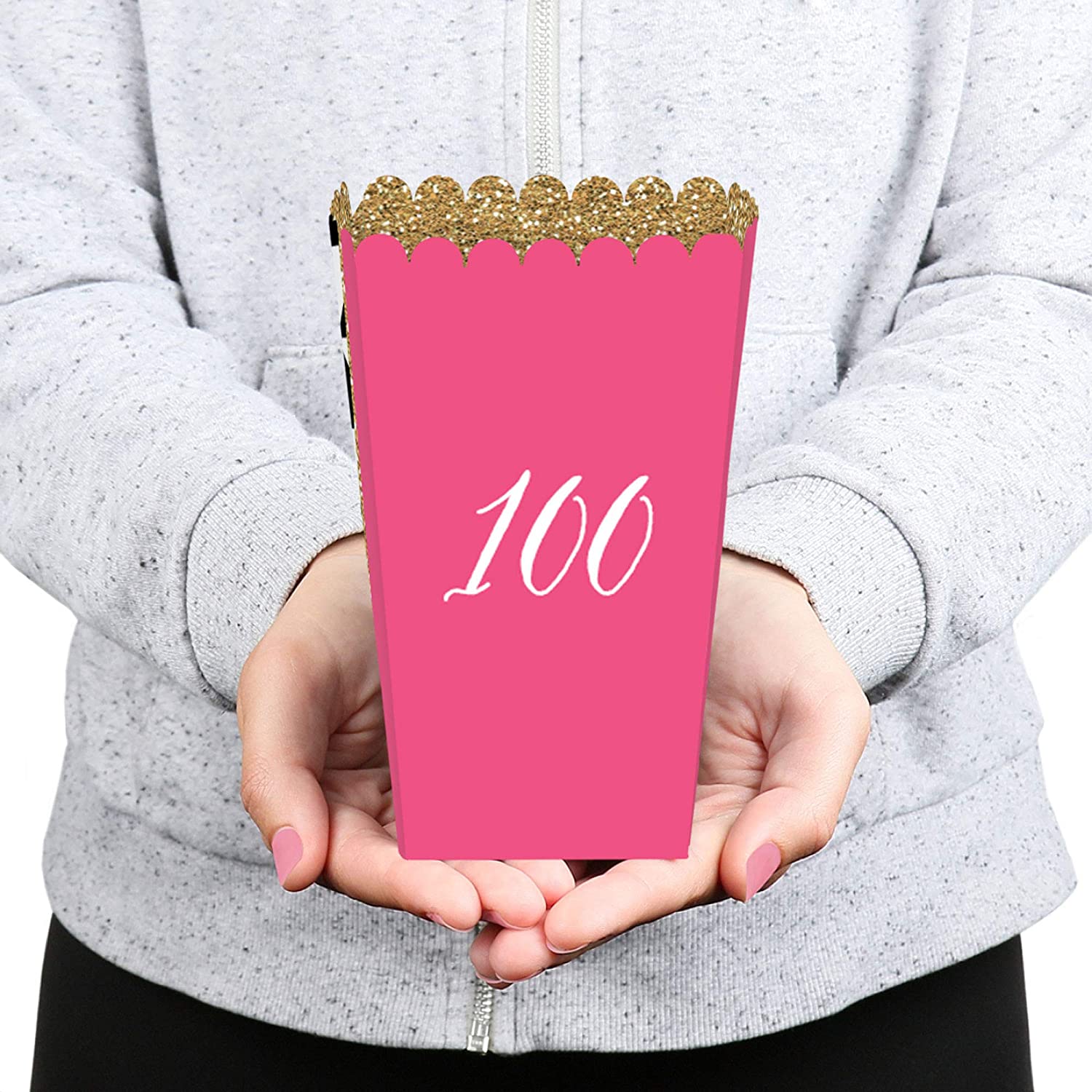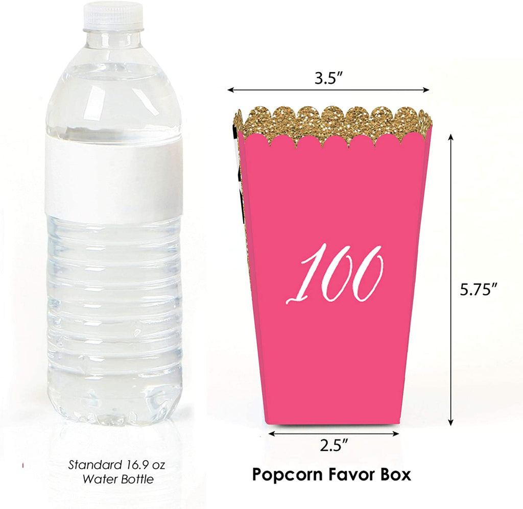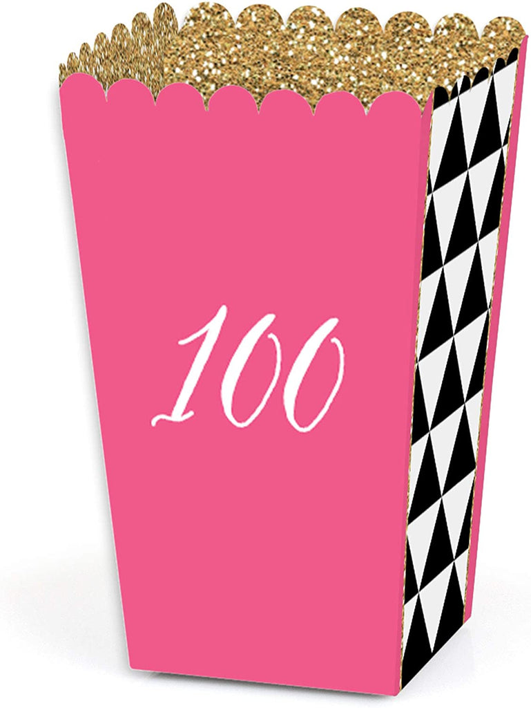 Chic 100th Birthday - Pink, Black and Gold - Birthday Party Favor Popcorn Treat Boxes - Set of 12 is backordered and will ship as soon as it is back in stock.