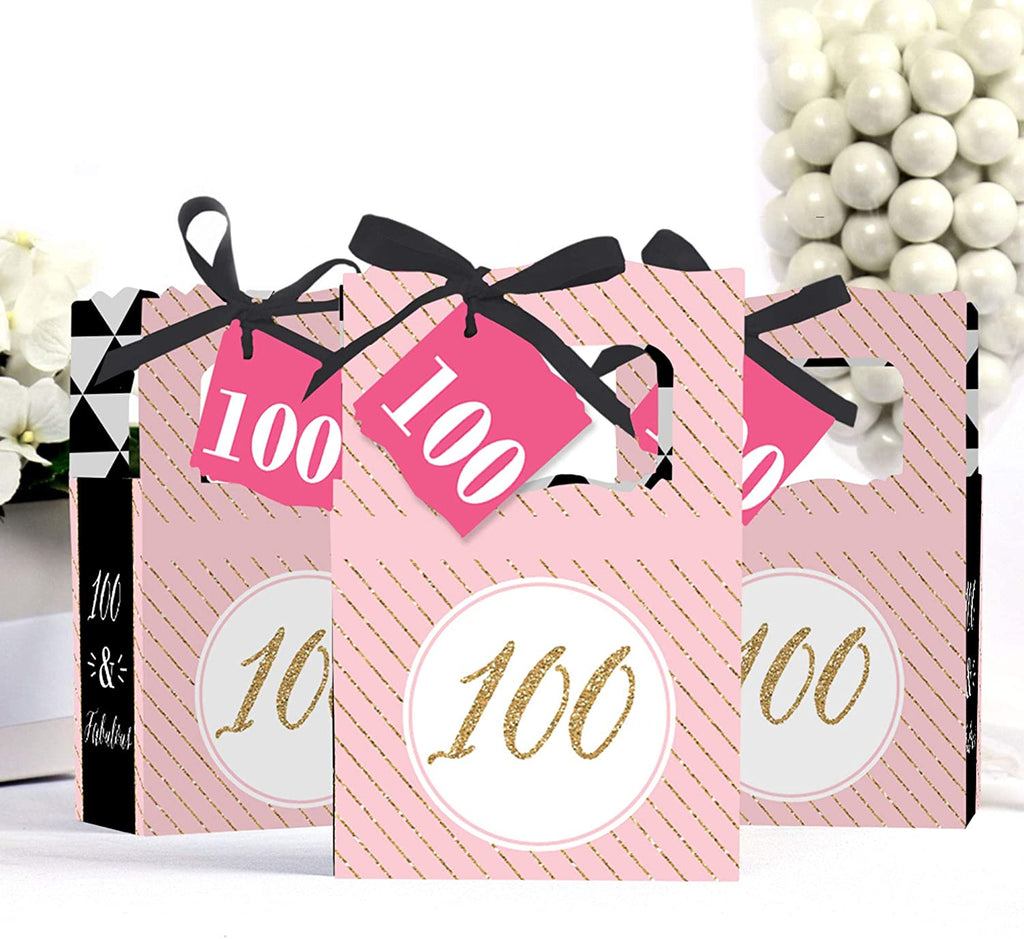 Chic 100th Birthday - Pink, Black and Gold - Party Favor Boxes - Set of 12 is backordered and will ship as soon as it is back in stock.