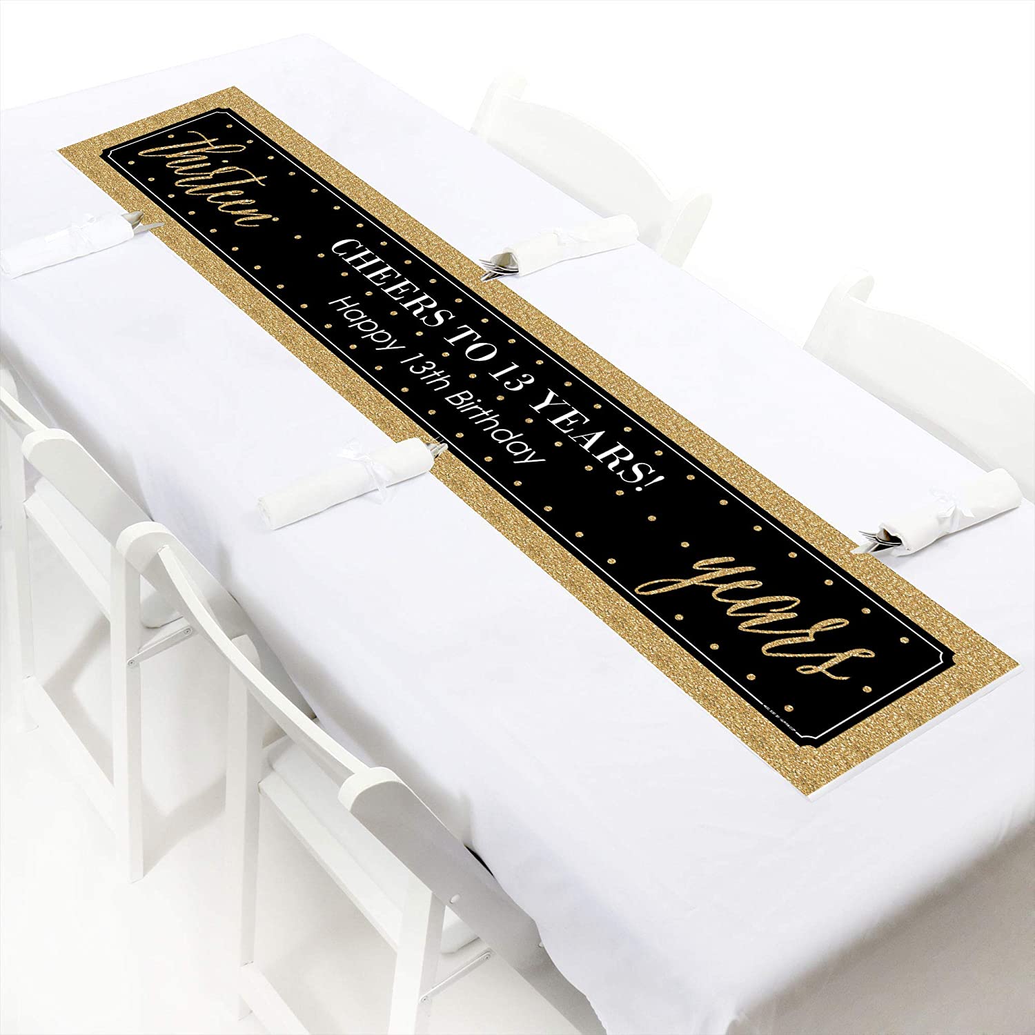 Chic 13th Birthday - Black and Gold - Happy Birthday Decorations Party Banner is backordered and will ship as soon as it is back in stock.
