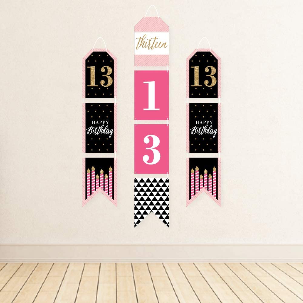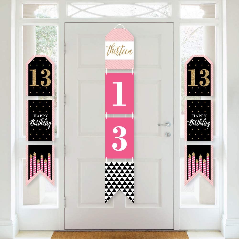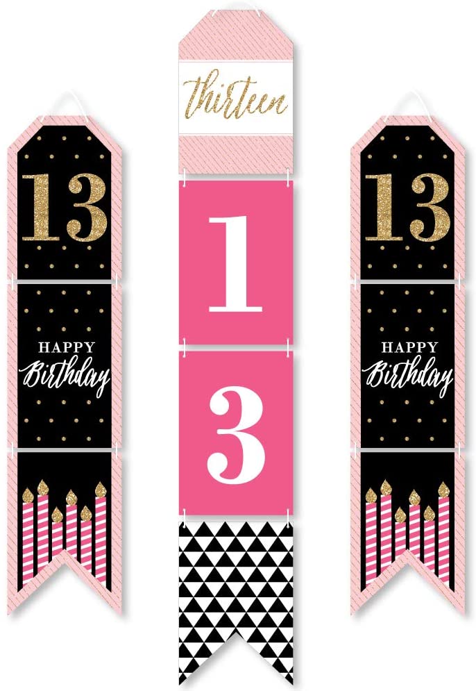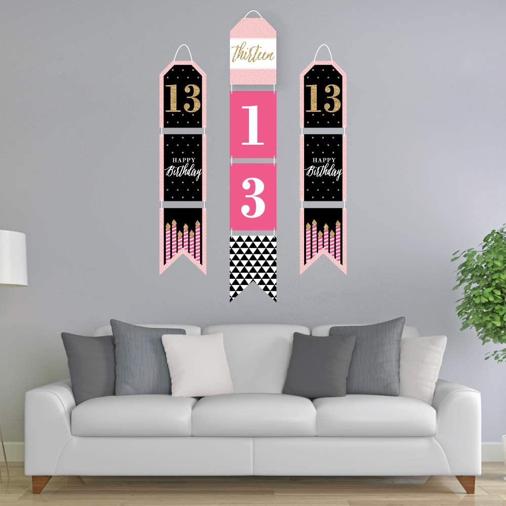 Chic 13th Birthday - Pink, Black and Gold - Hanging Vertical Paper Door Banners - Birthday Party Wall Decoration Kit - Indoor Door Decor is backordered and will ship as soon as it is back in stock.
