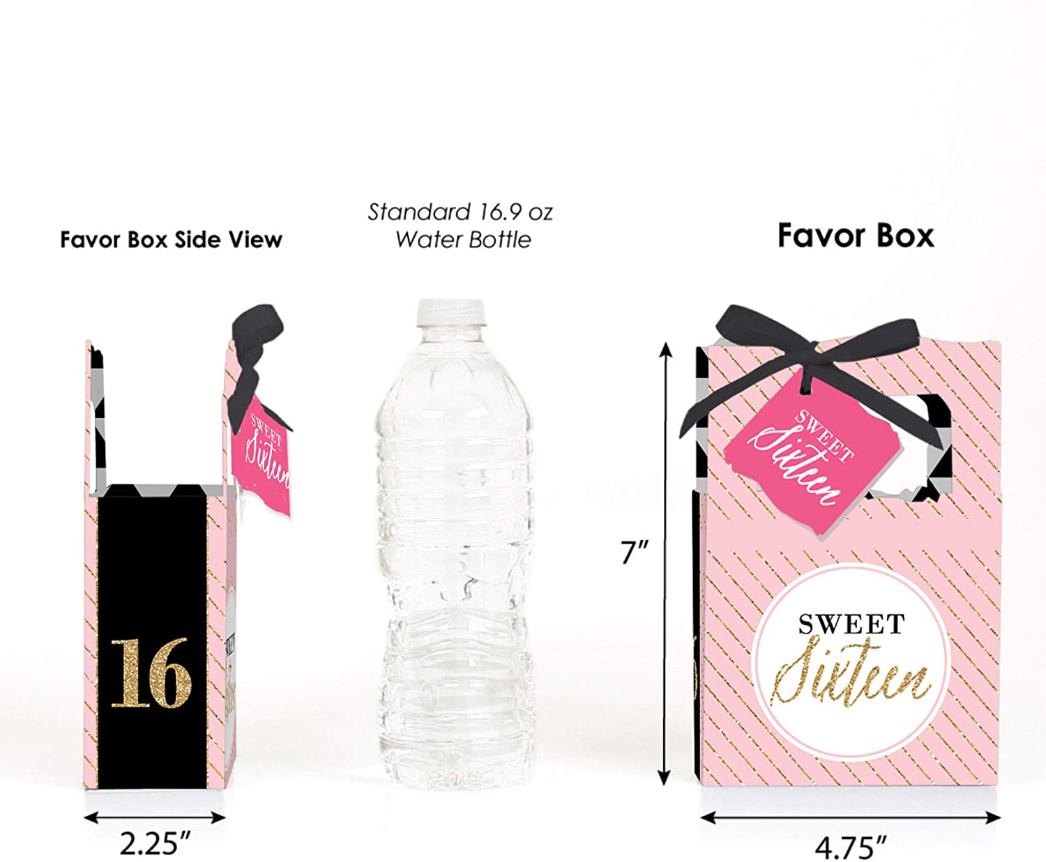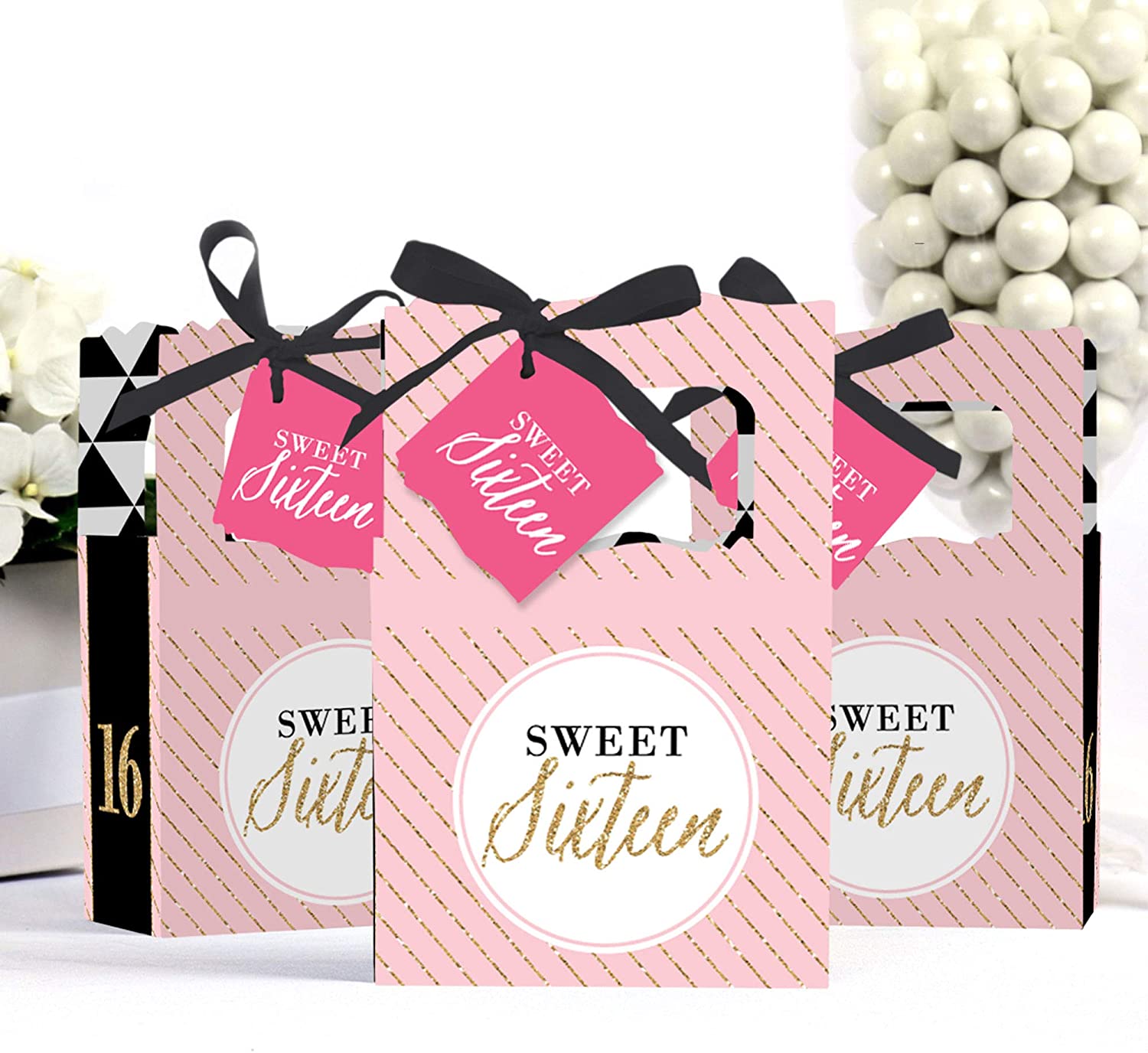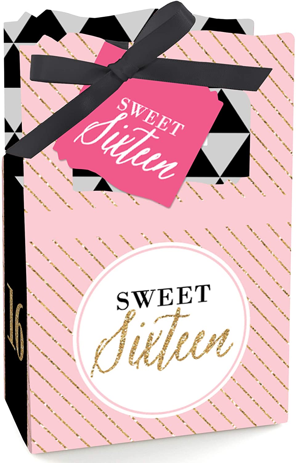Chic 16th Birthday - Pink, Black and Gold - Party Favor Boxes - Set of 12 is backordered and will ship as soon as it is back in stock.