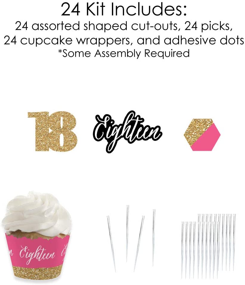 Chic 18th Birthday - Pink, Black and Gold - Cupcake Decoration - Birthday Party Cupcake Wrappers and Treat Picks Kit - Set of 24 is backordered and will ship as soon as it is back in stock.