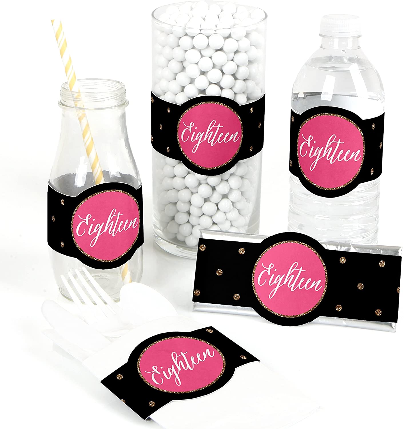 Chic 18th Birthday - Pink, Black and Gold - DIY Party Supplies - Birthday Party DIY Wrapper Favors & Decorations - Set of 15 is backordered and will ship as soon as it is back in stock.