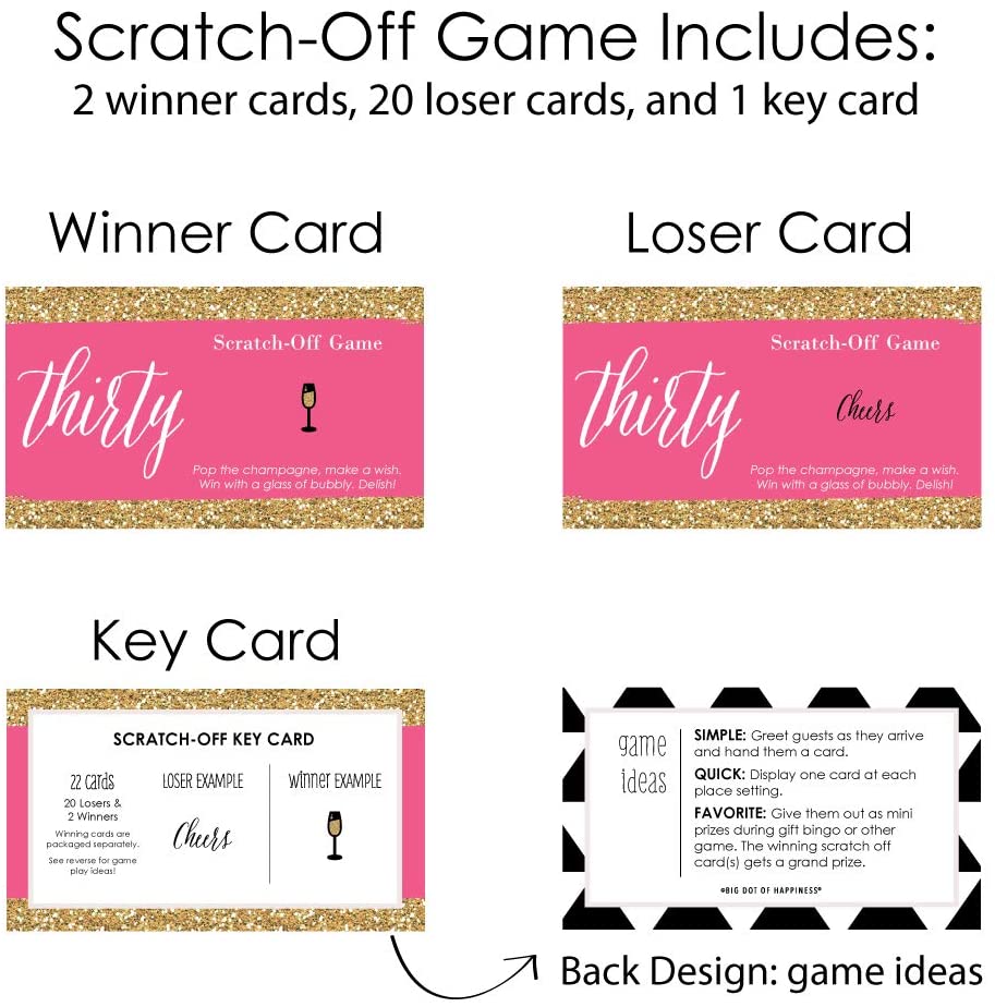 Chic 30th Birthday - Pink and Gold - Birthday Party Game Scratch Off Cards - 22 Count is backordered and will ship as soon as it is back in stock.