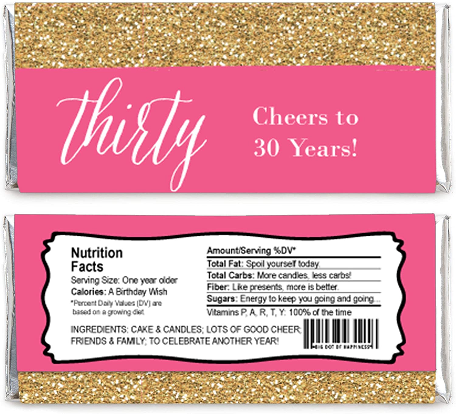 Chic 30th Birthday - Pink and Gold - Candy Bar Wrappers Birthday Party Favors - Set of 24 is backordered and will ship as soon as it is back in stock.