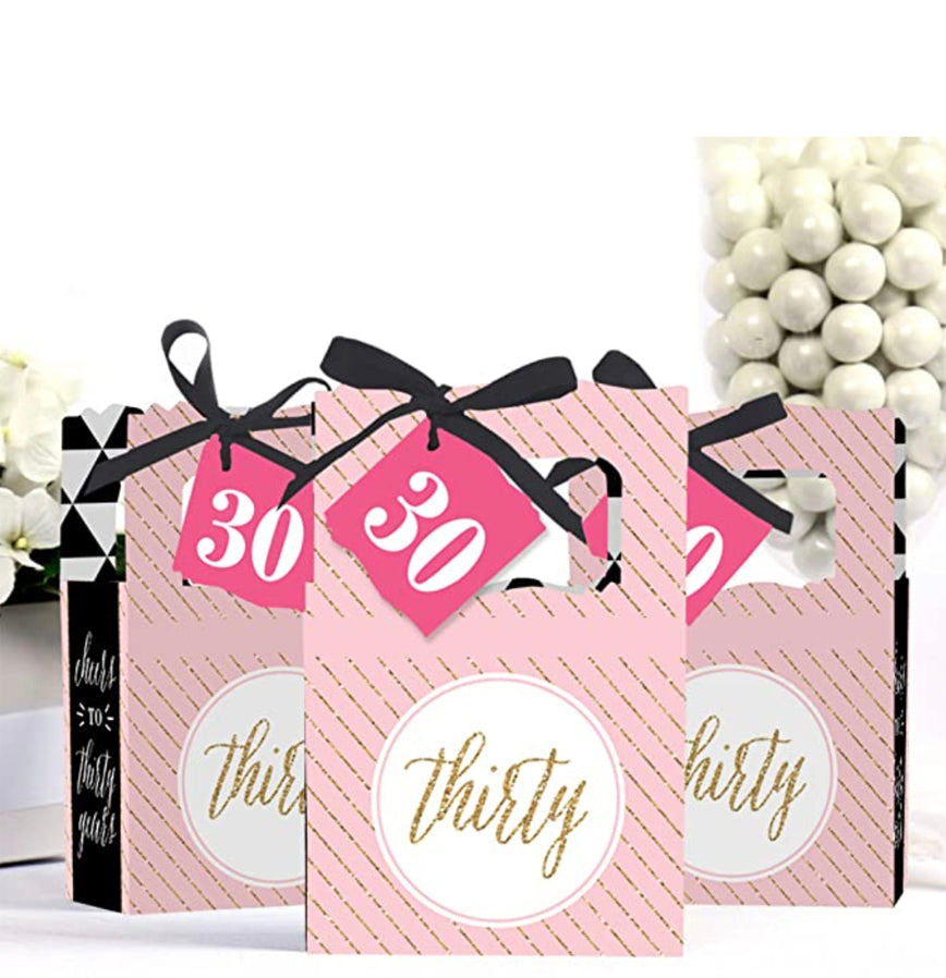 Chic 30th Birthday - Pink, Black and Gold - Birthday Party Favor Boxes - Set of 12 is backordered and will ship as soon as it is back in stock.