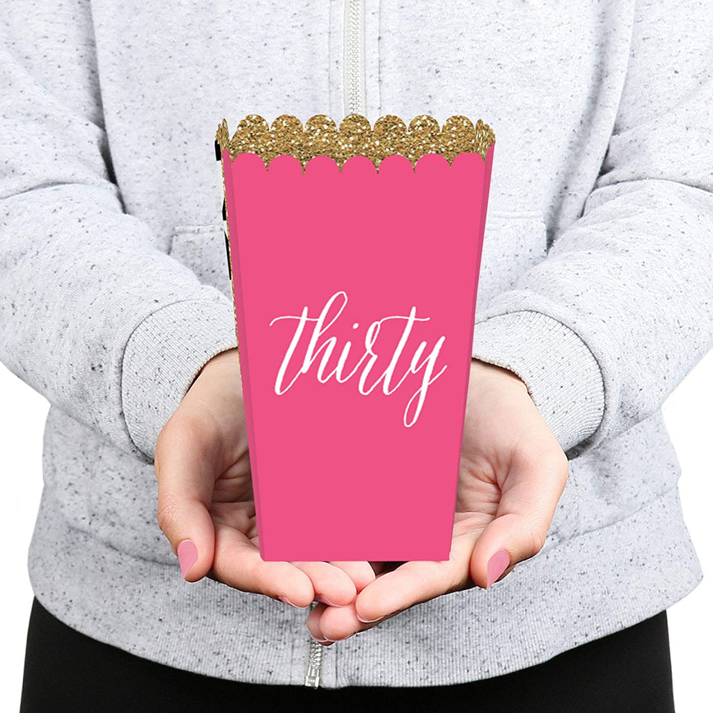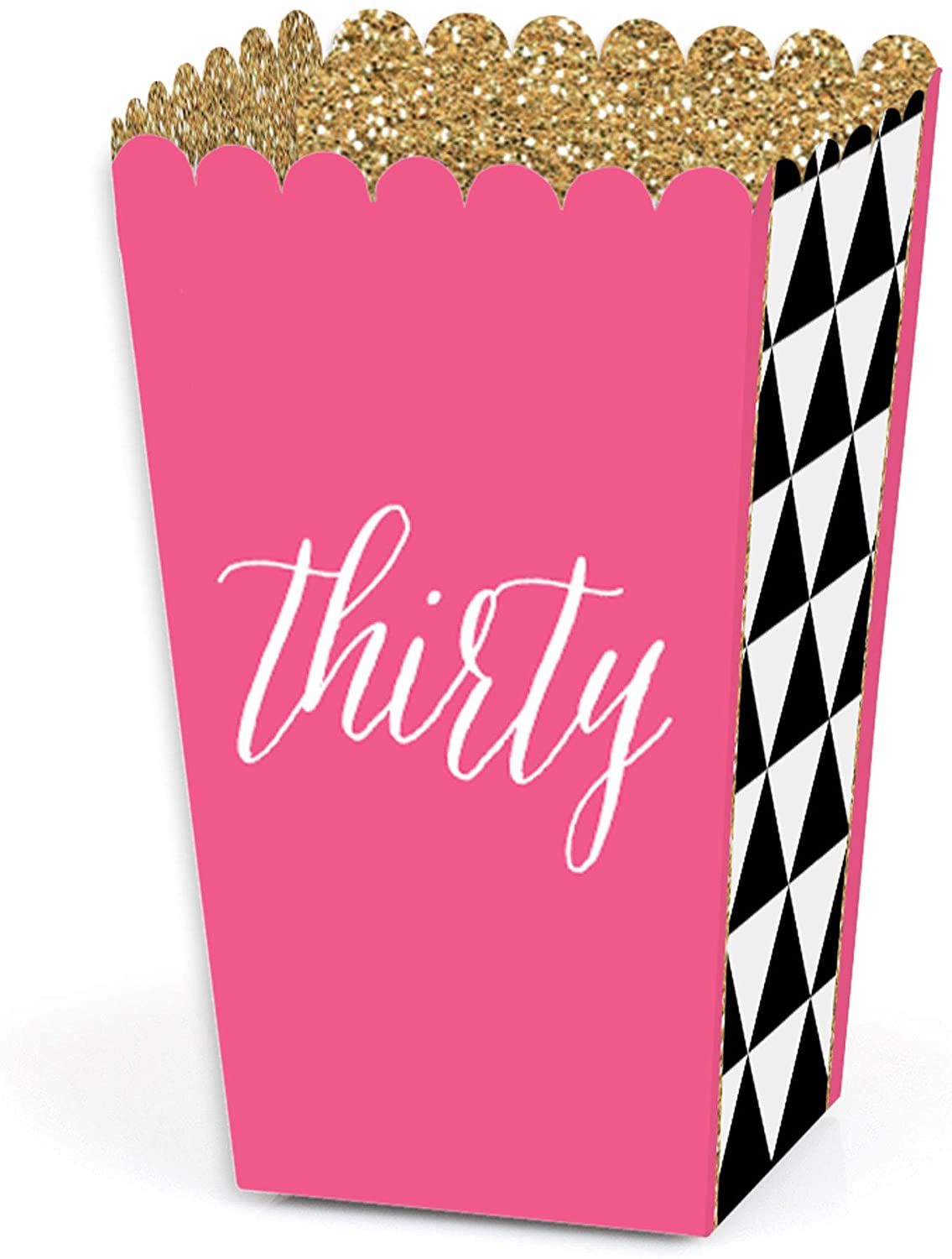 Chic 30th Birthday - Pink, Black and Gold - Birthday Party Favor Popcorn Treat Boxes - Set of 12 is backordered and will ship as soon as it is back in stock.