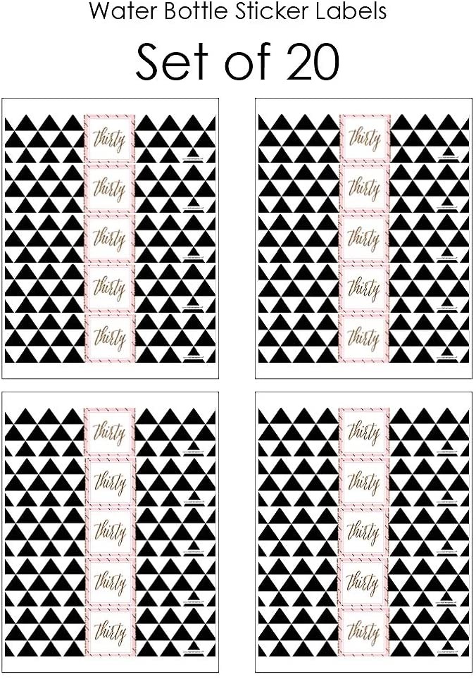 Chic 30th Birthday - Pink, Black and Gold - Birthday Party Water Bottle Sticker Labels - Set of 20 is backordered and will ship as soon as it is back in stock.