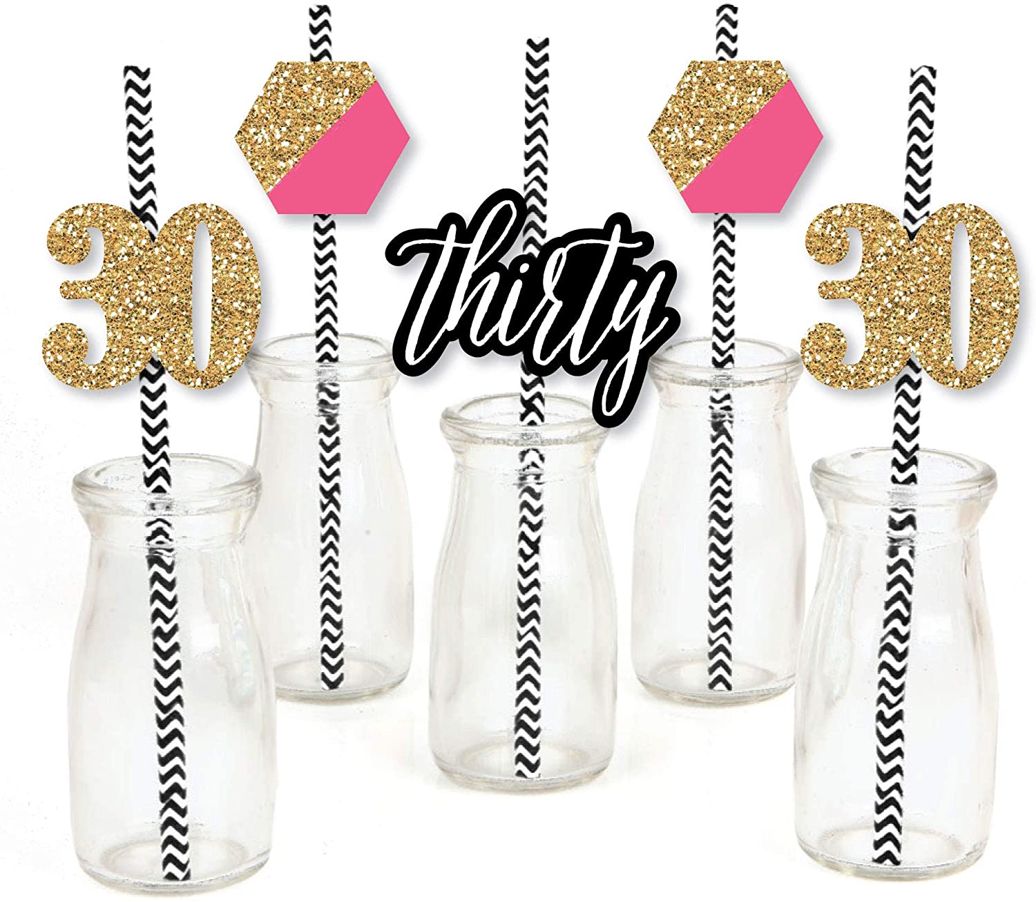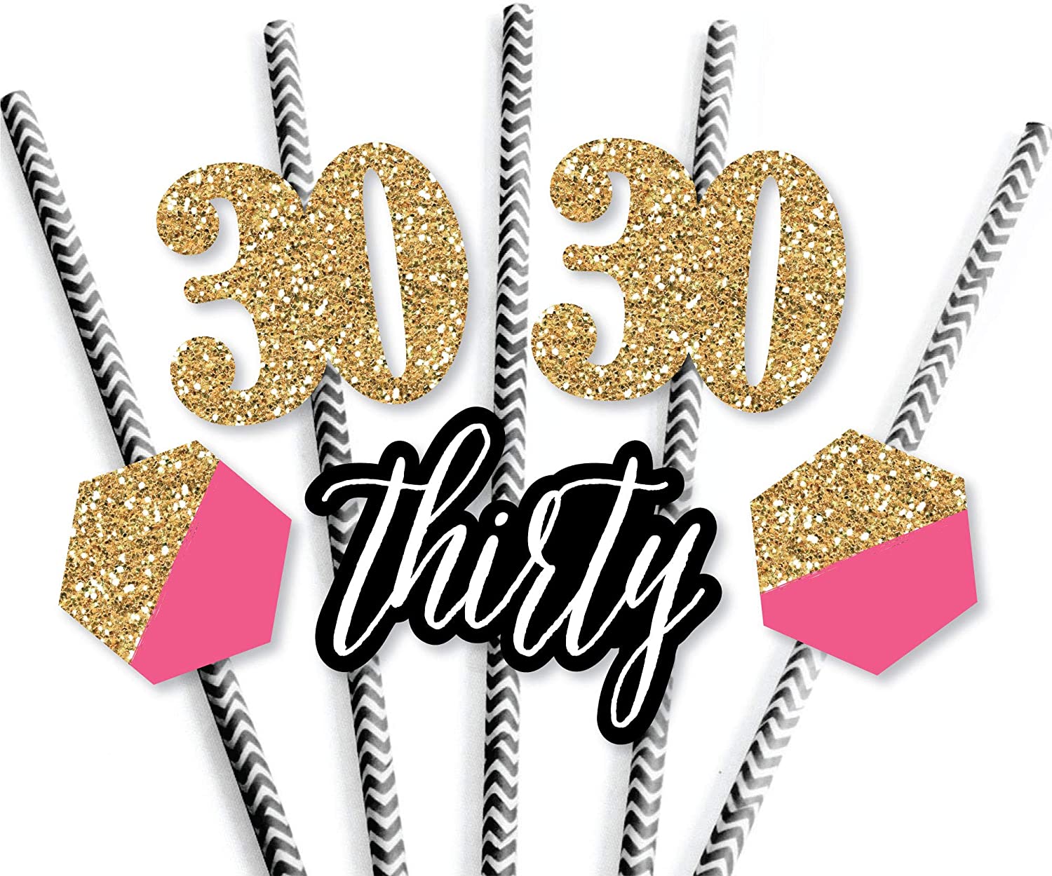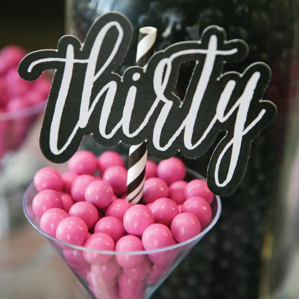 • EASY PARTY DECORATIONS: Chic 30th Birthday straw décor will add a touch of style to your birthday party tables. Thirtieth straw décor will also look great at your beverage bar. Use these adorable birthday party accessories as straws or swizzle sticks. The paper straws can also be cut in half and used as cupcake picks once the shaped cut out is attached.