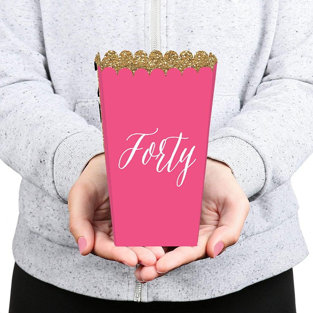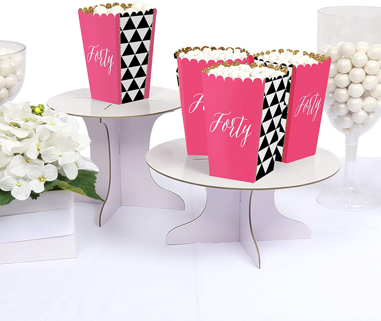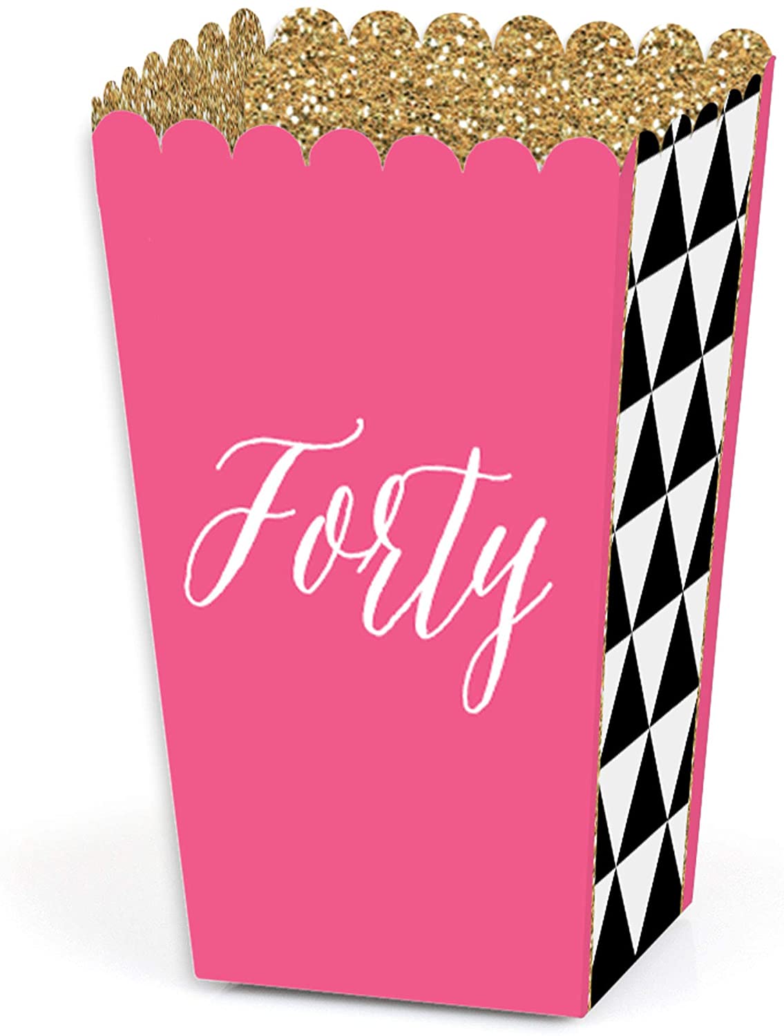 Chic 40th Birthday - Pink, Black and Gold - Birthday Party Favor Popcorn Treat Boxes - Set of 12 is backordered and will ship as soon as it is back in stock.