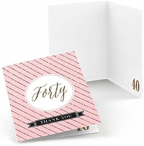 • PREMIUM THANK YOU CARDS: Chic 40th Birthday party thank you cards are professionally printed on heavy-duty cardstock paper with a photo-like shine. They are then hand-folded and individually inspected, then carefully packaged with our exclusive squiggle flap envelopes, making this stationary set a must-have for birthday parties.