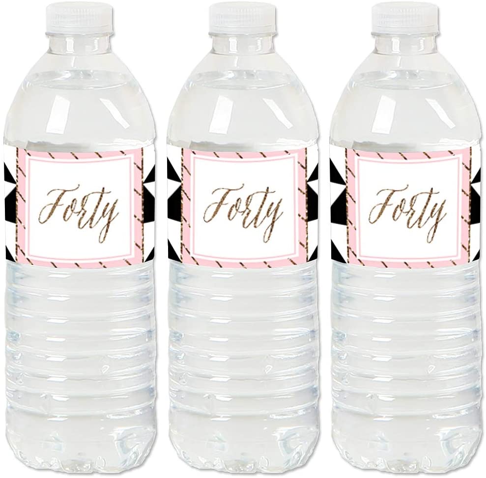Chic 40th Birthday - Pink, Black and Gold - Birthday Party Water Bottle Sticker Labels - Set of 20 is backordered and will ship as soon as it is back in stock.