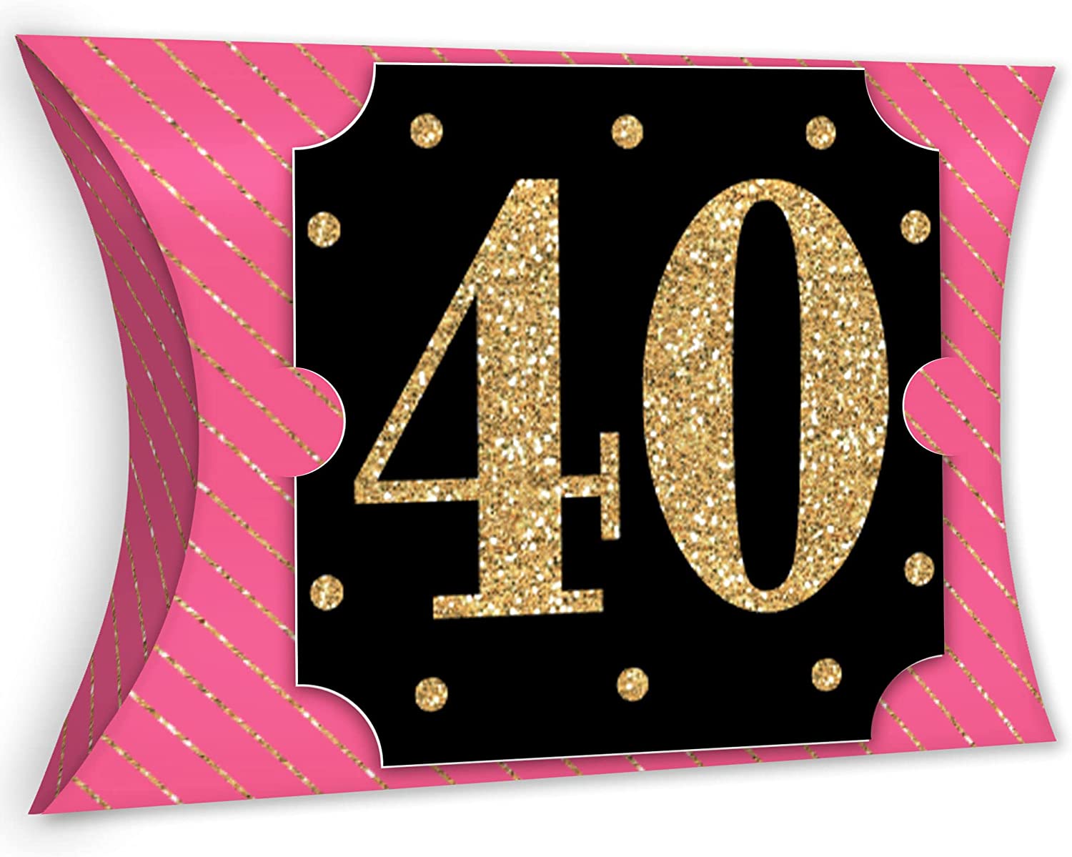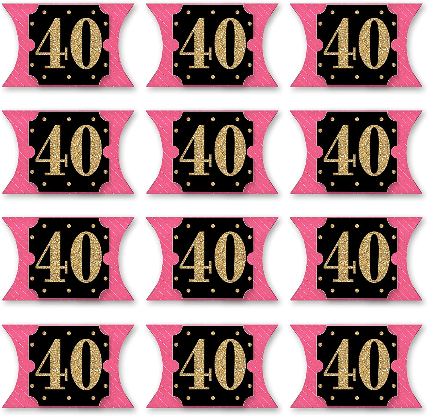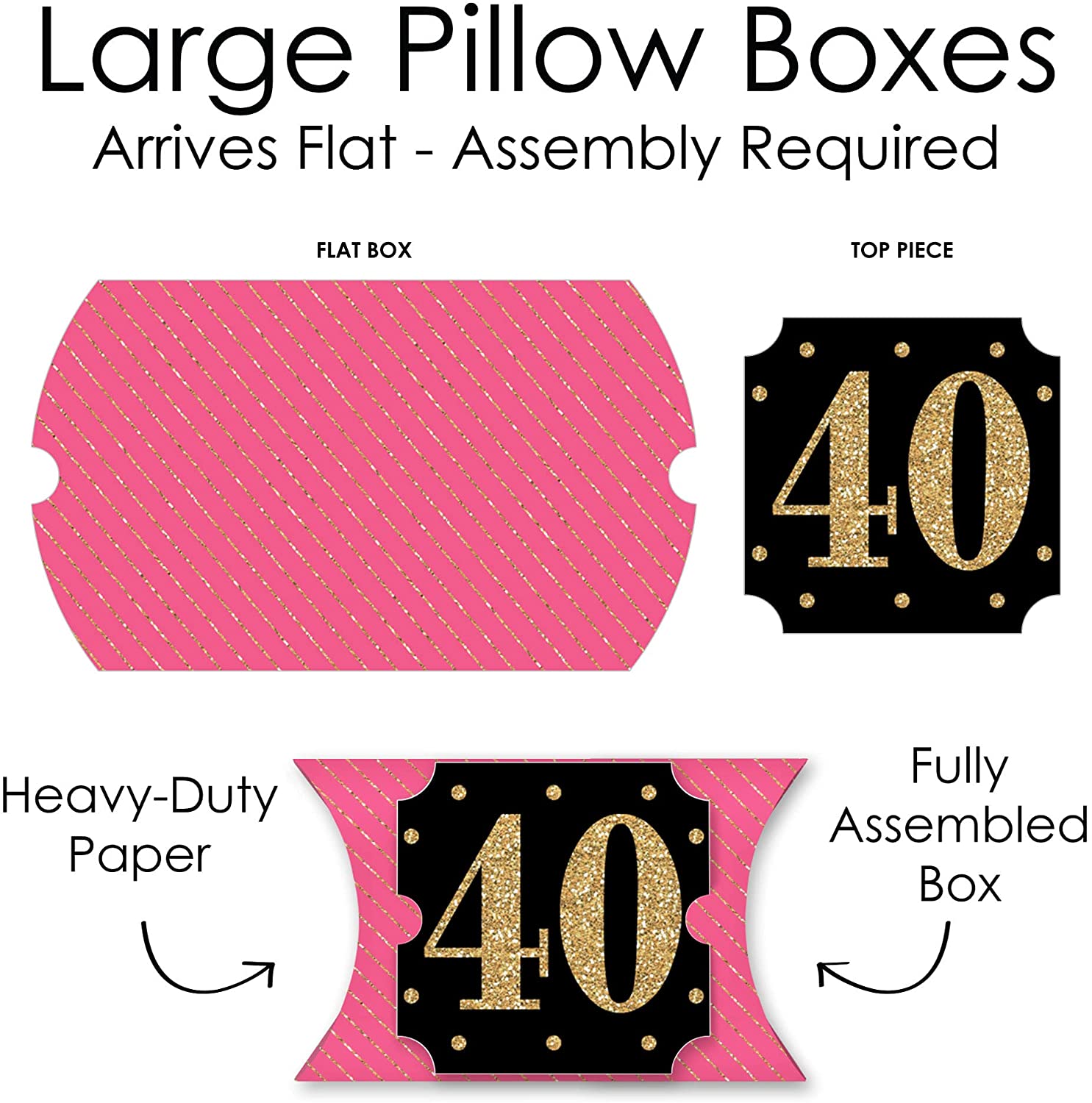 Chic 40th Birthday - Pink, Black, and Gold - Favor Gift Boxes - Birthday Party Large Pillow Boxes - Set of 12 is backordered and will ship as soon as it is back in stock.