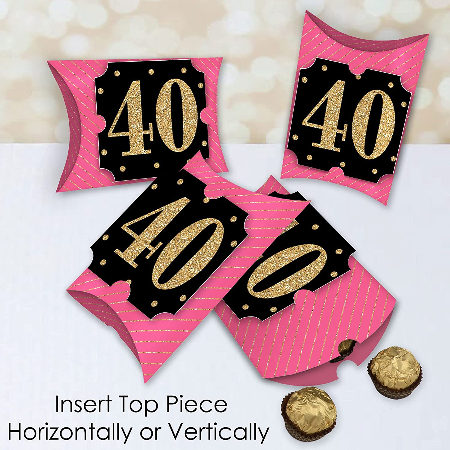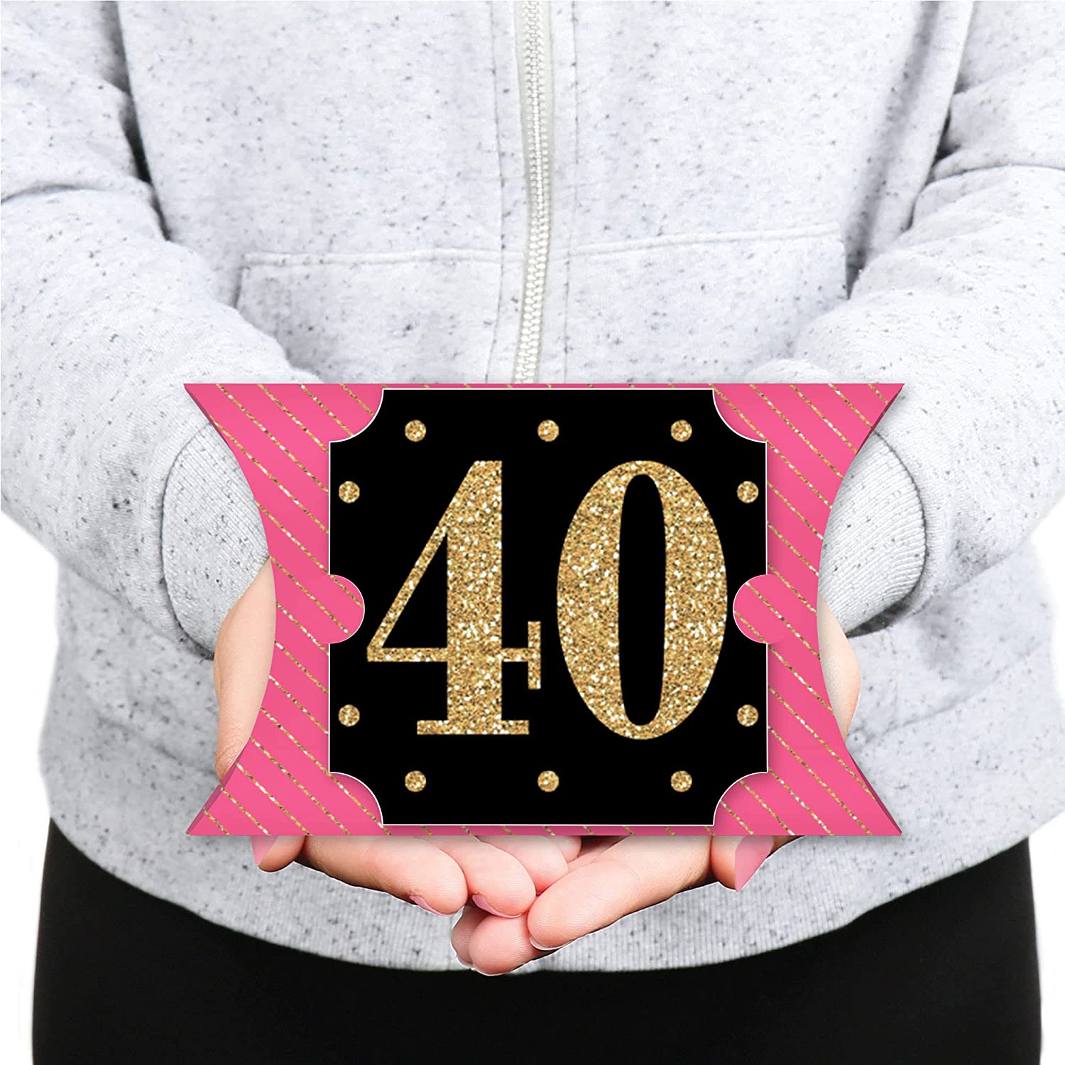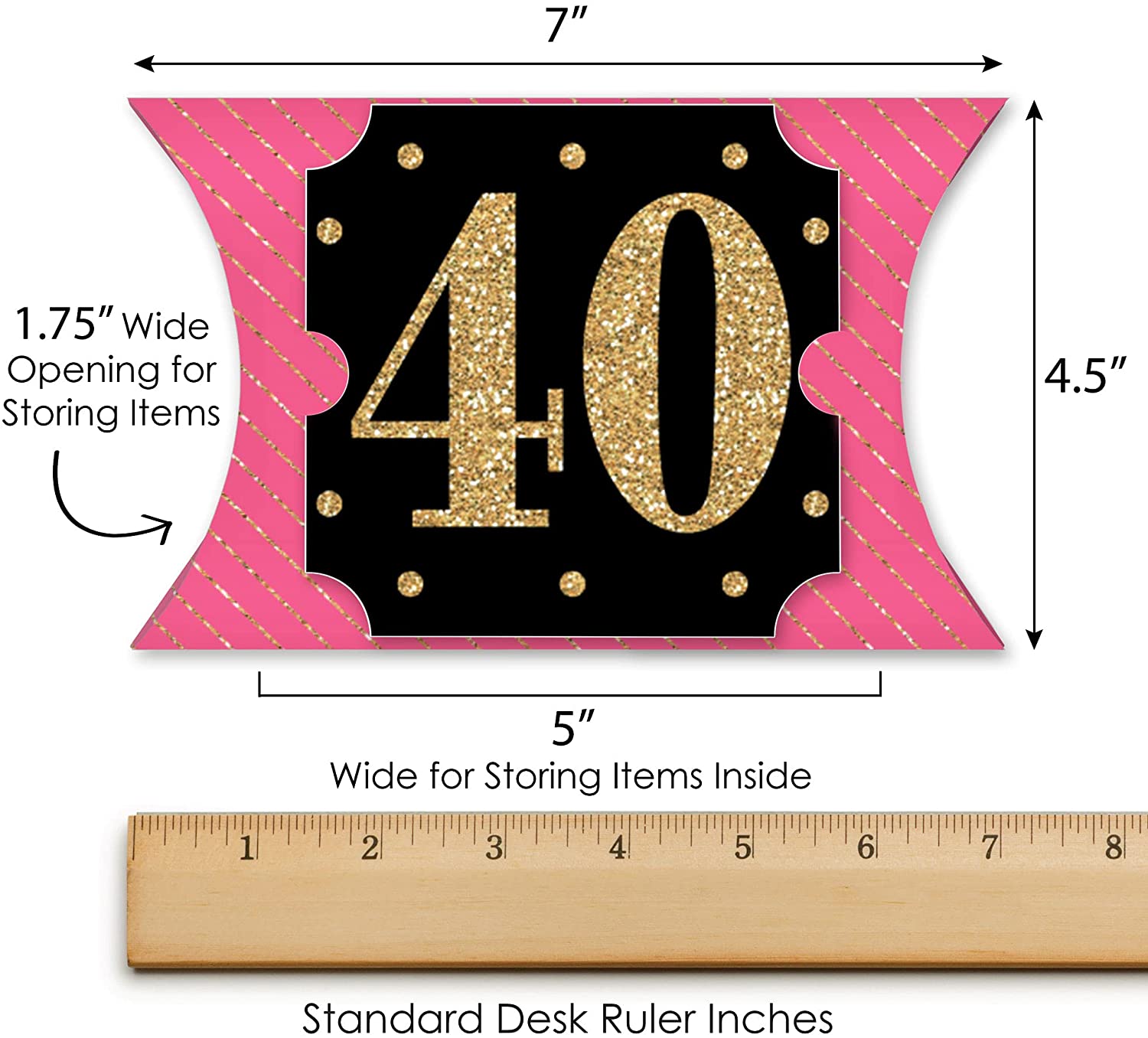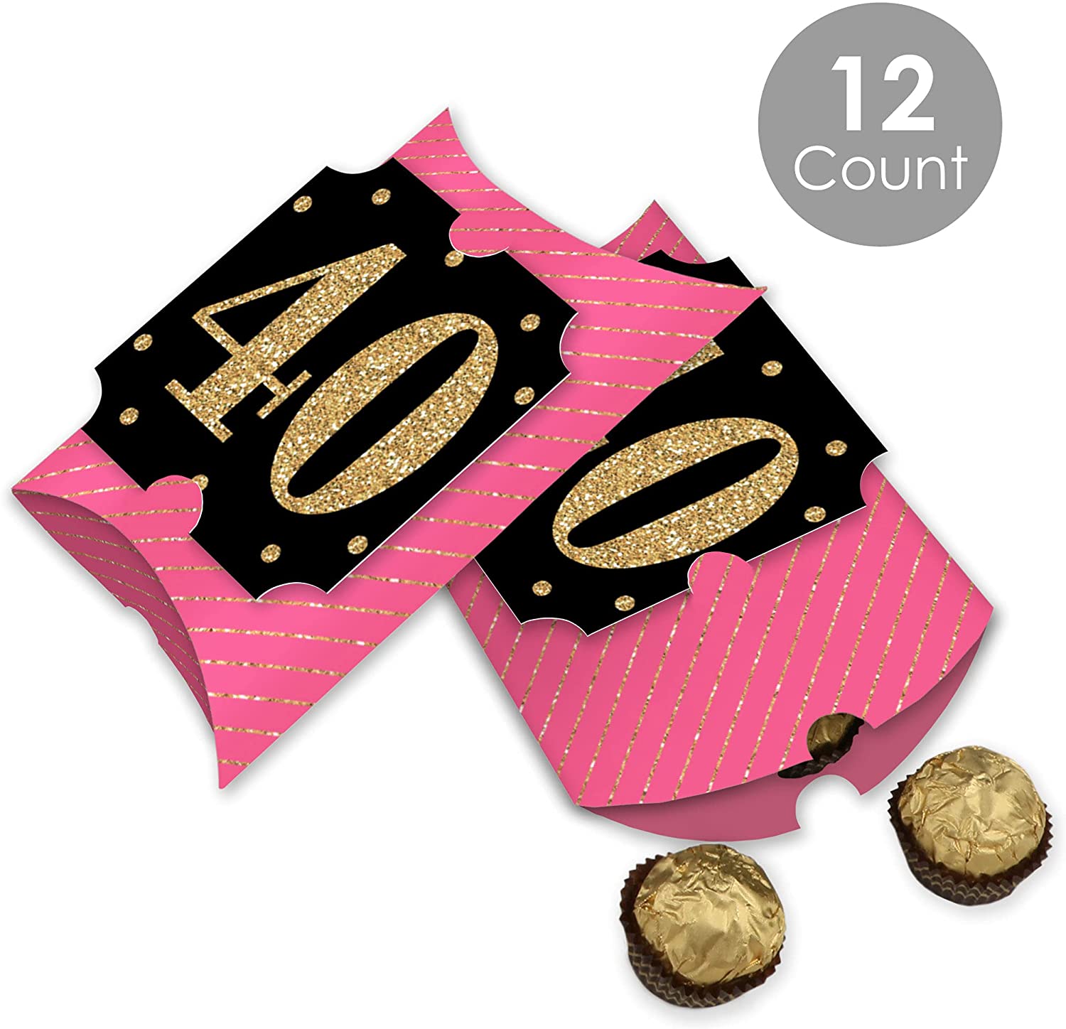 Chic 40th Birthday - Pink, Black, and Gold - Favor Gift Boxes - Birthday Party Large Pillow Boxes - Set of 12 is backordered and will ship as soon as it is back in stock.