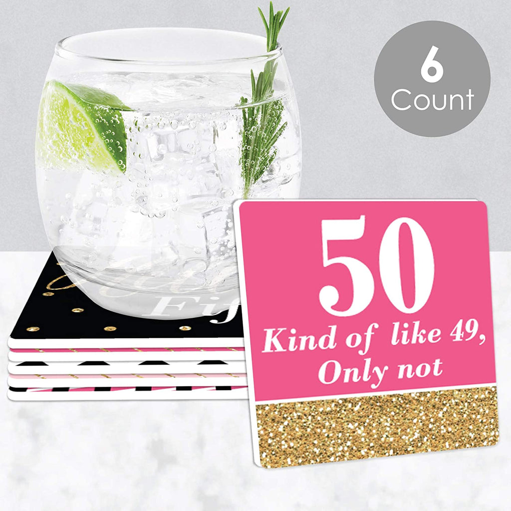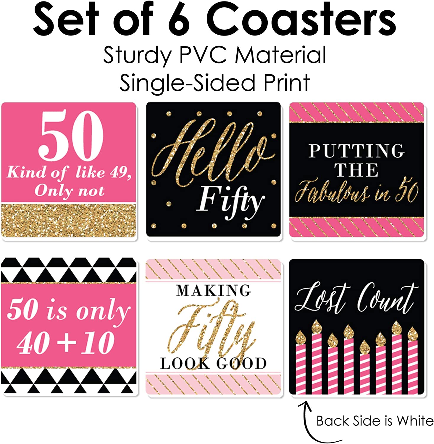 Chic 50th Birthday - Pink, Black and Gold - Funny Birthday Party Decorations - Drink Coasters - Set of 6 is backordered and will ship as soon as it is back in stock.