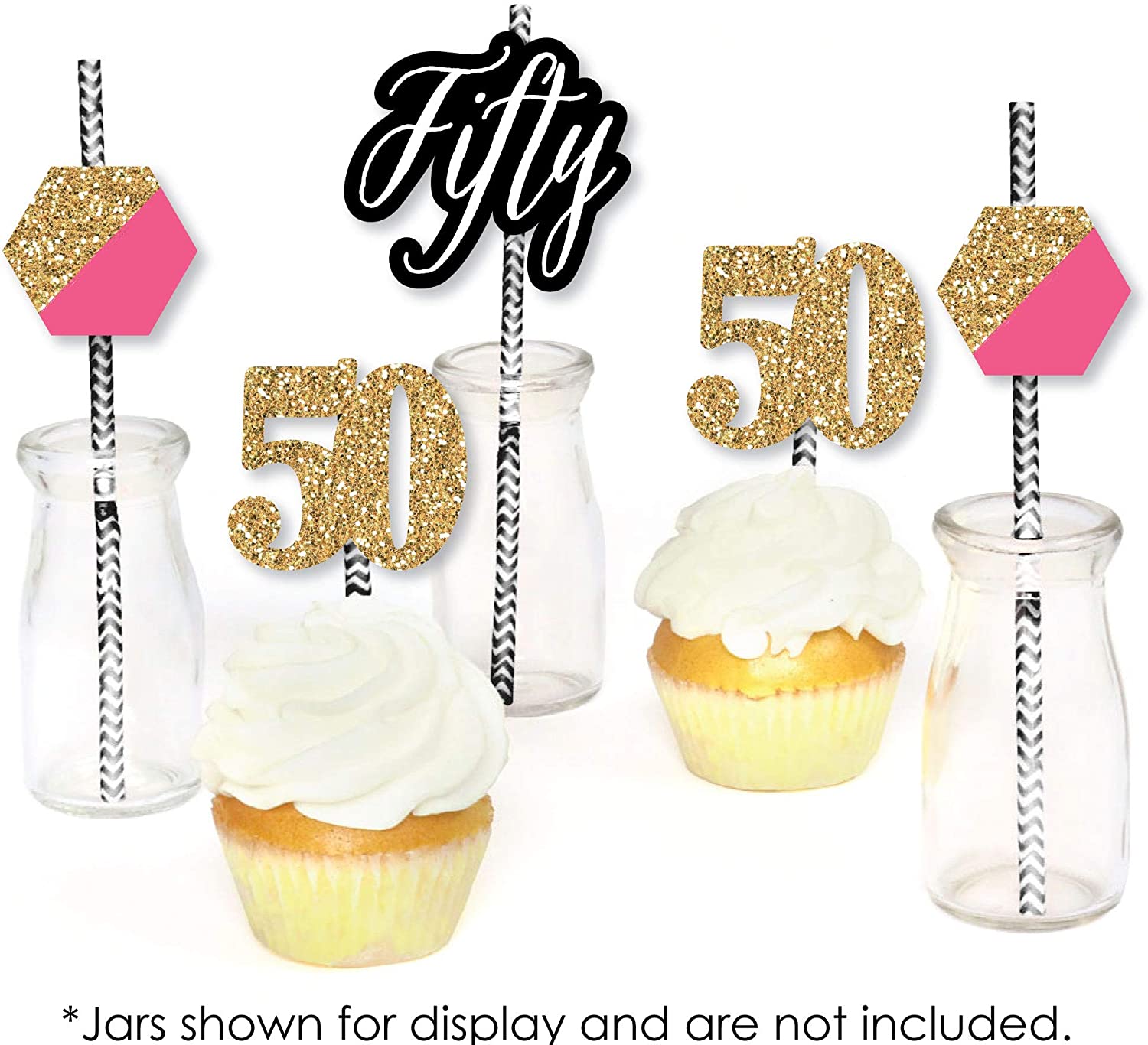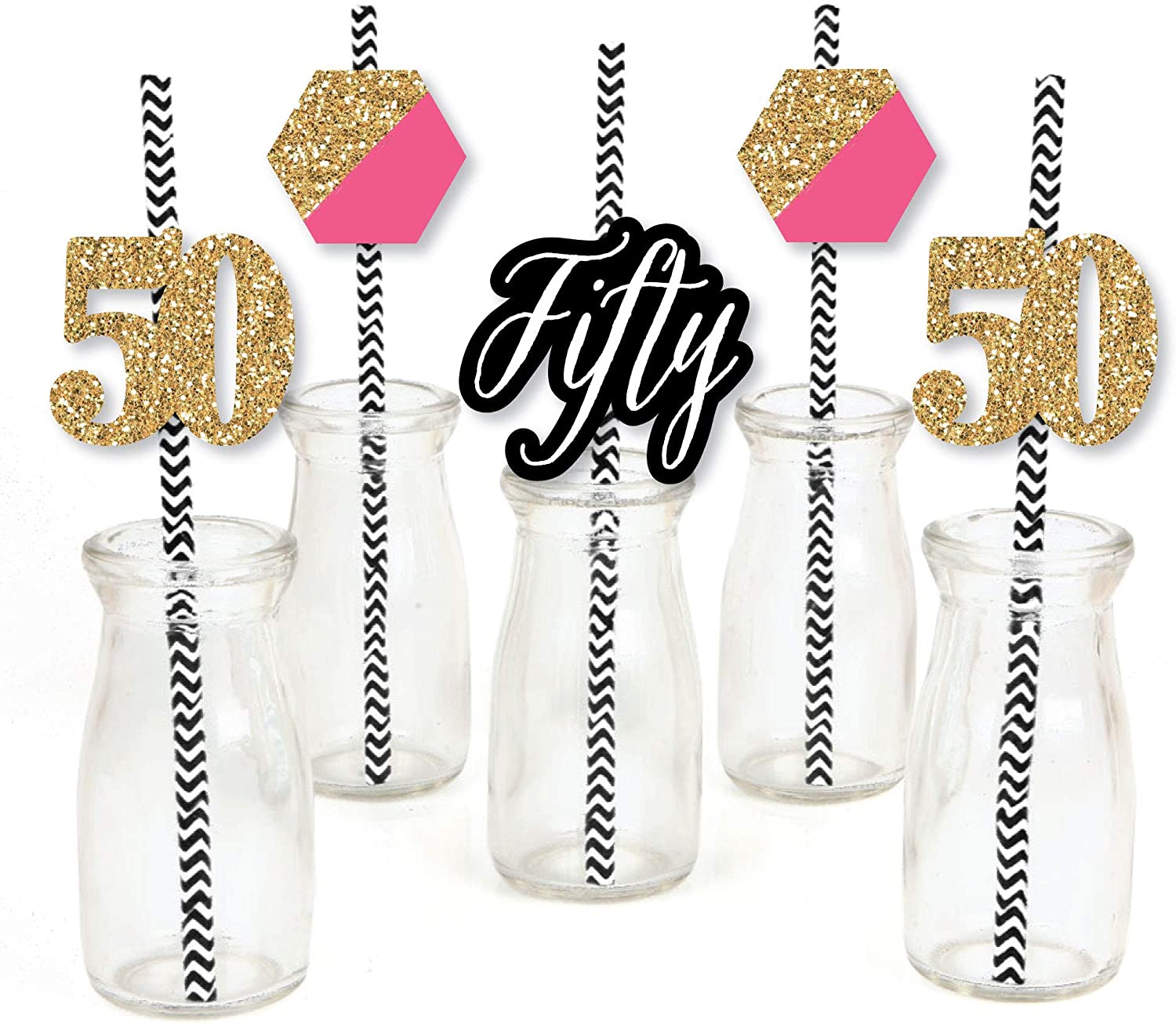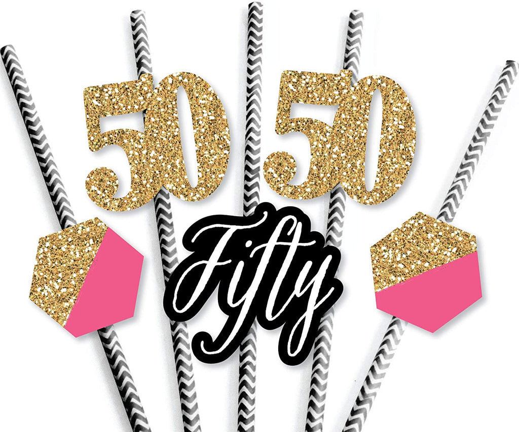 Chic 50th Birthday - Pink, Black and Gold Paper Straw Decor - Birthday Party Striped Decorative Straws - Set of 24 is backordered and will ship as soon as it is back in stock.