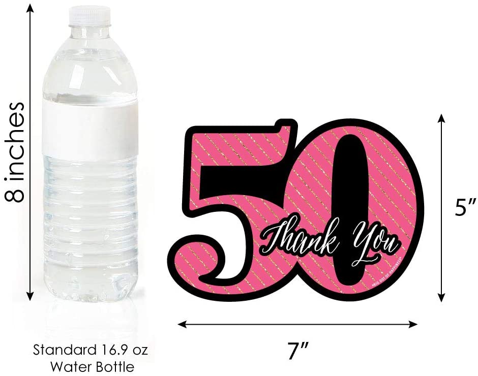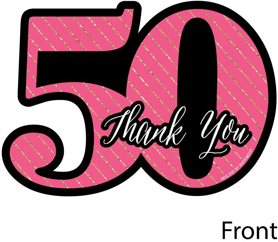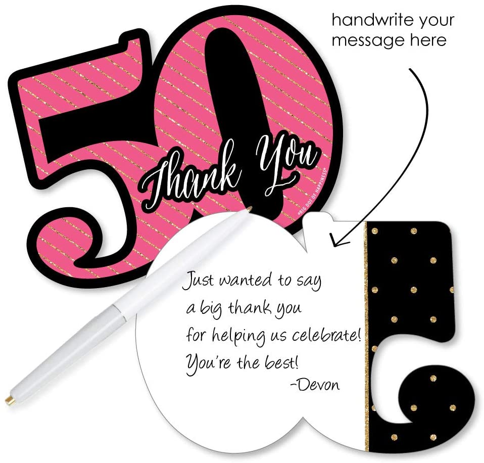 Chic 50th Birthday - Pink, Black and Gold - Shaped Thank You Cards - Birthday Party Thank You Note Cards with Envelopes - Set of 12