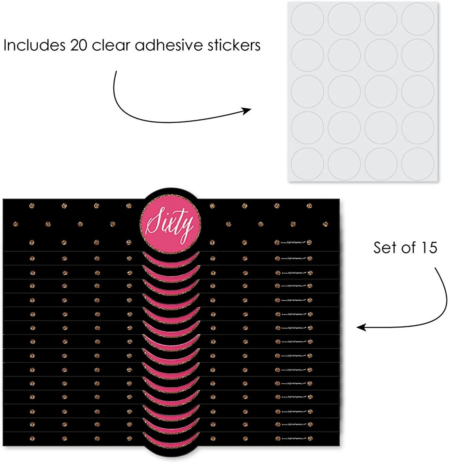 Chic 60th Birthday - Pink, Black and Gold - DIY Party Supplies - Birthday Party DIY Wrapper Favors & Decorations - Set of 15 is backordered and will ship as soon as it is back in stock.