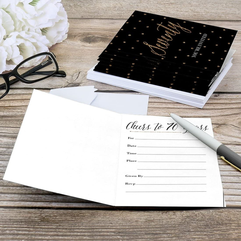 Chic 70th Birthday - Black and Gold - Fill In Birthday Party Invitations (8 count) is backordered and will ship as soon as it is back in stock.