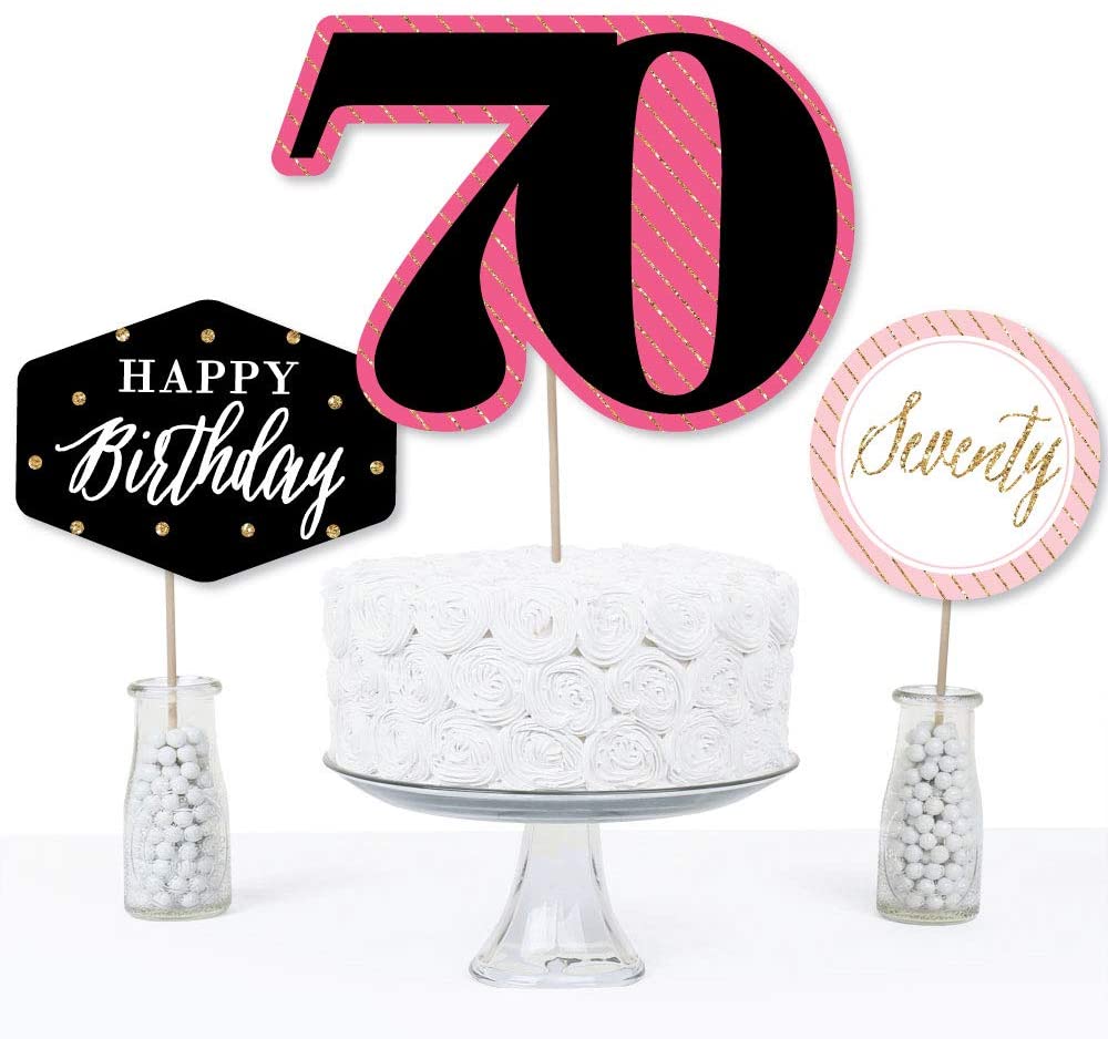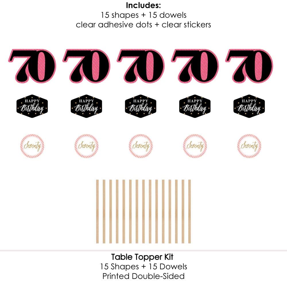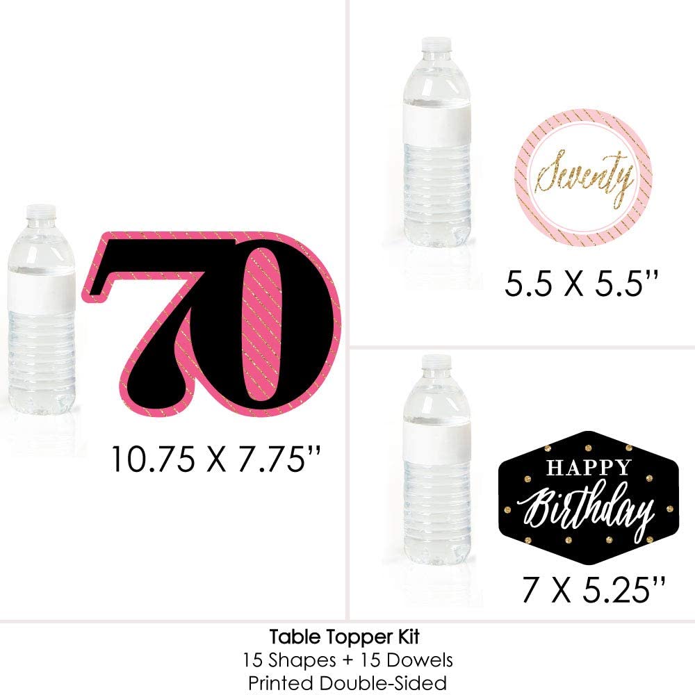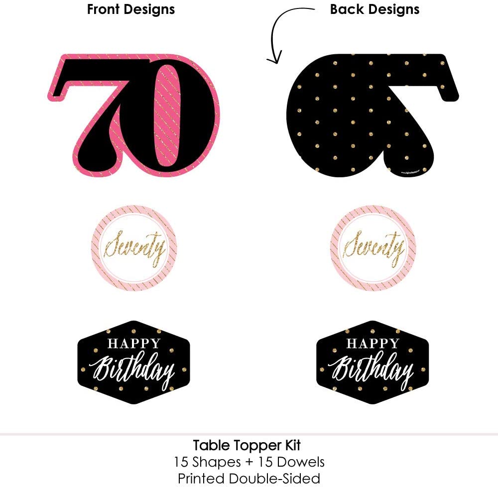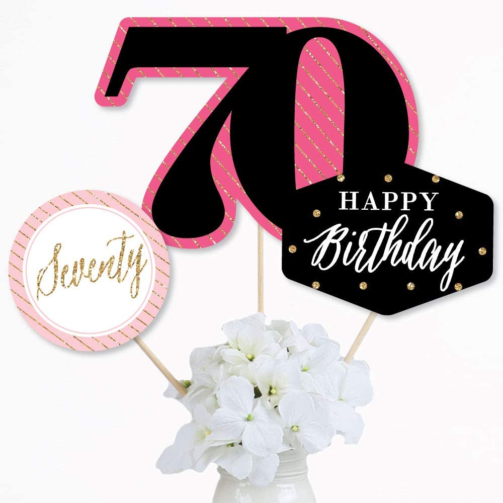 Chic 70th Birthday - Pink, Black and Gold - Birthday Party Centerpiece Sticks - Table Toppers - Set of 15 is backordered and will ship as soon as it is back in stock.