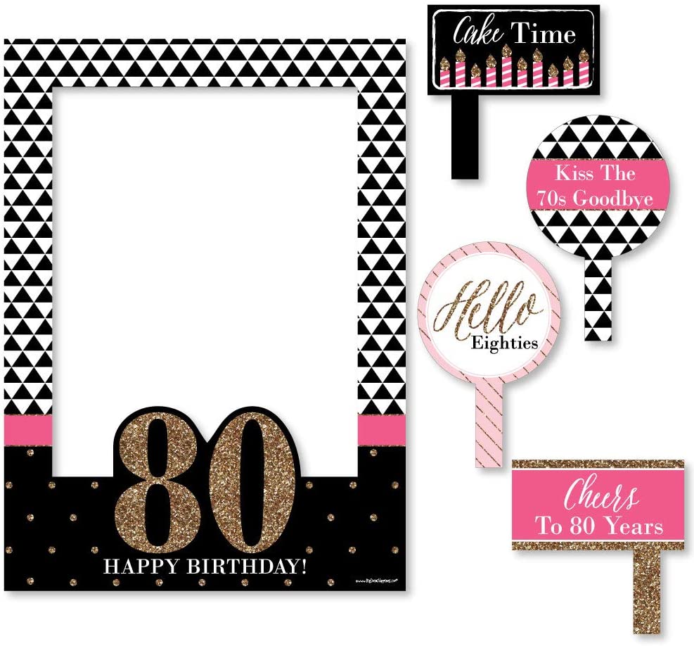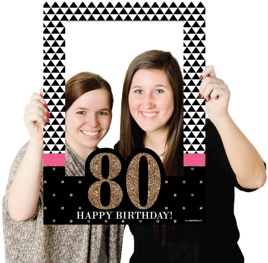 Chic 80th Birthday - Pink, Black and Gold - Birthday Party Selfie Photo Booth Picture Frame & Props - Printed on Sturdy Material is backordered and will ship as soon as it is back in stock.