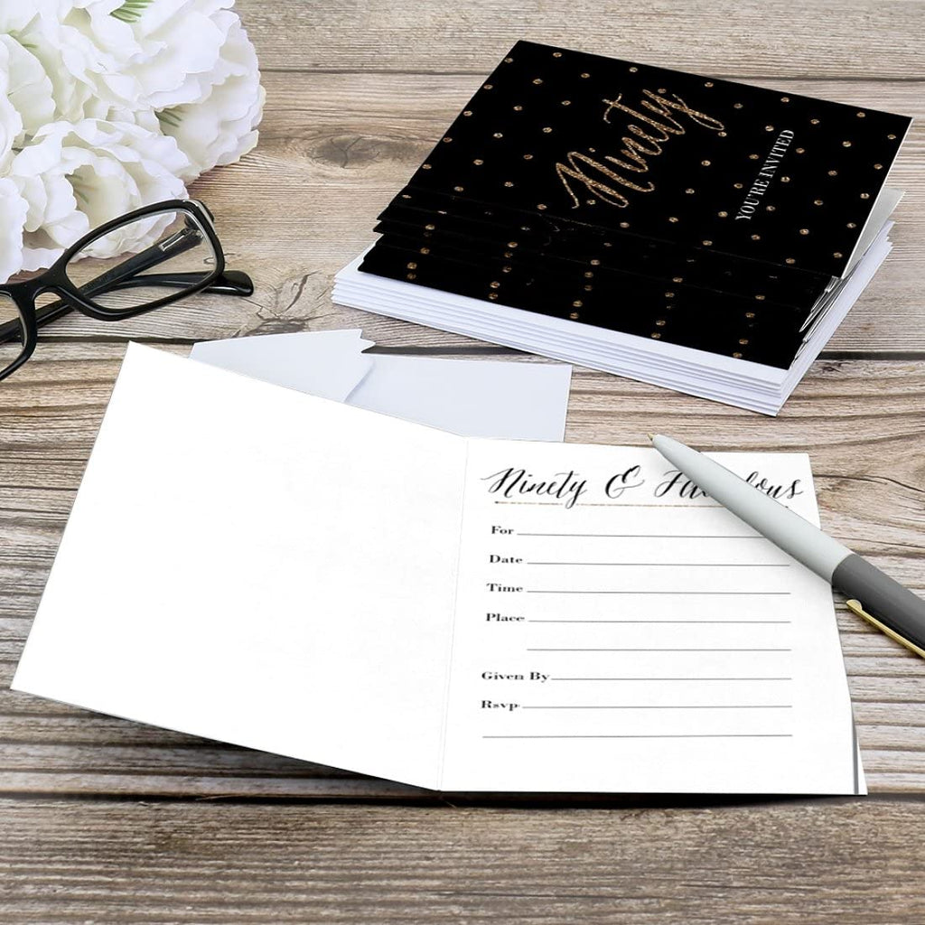 Chic 90th Birthday - Black and Gold - Fill In Birthday Party Invitations (8 count) is backordered and will ship as soon as it is back in stock.