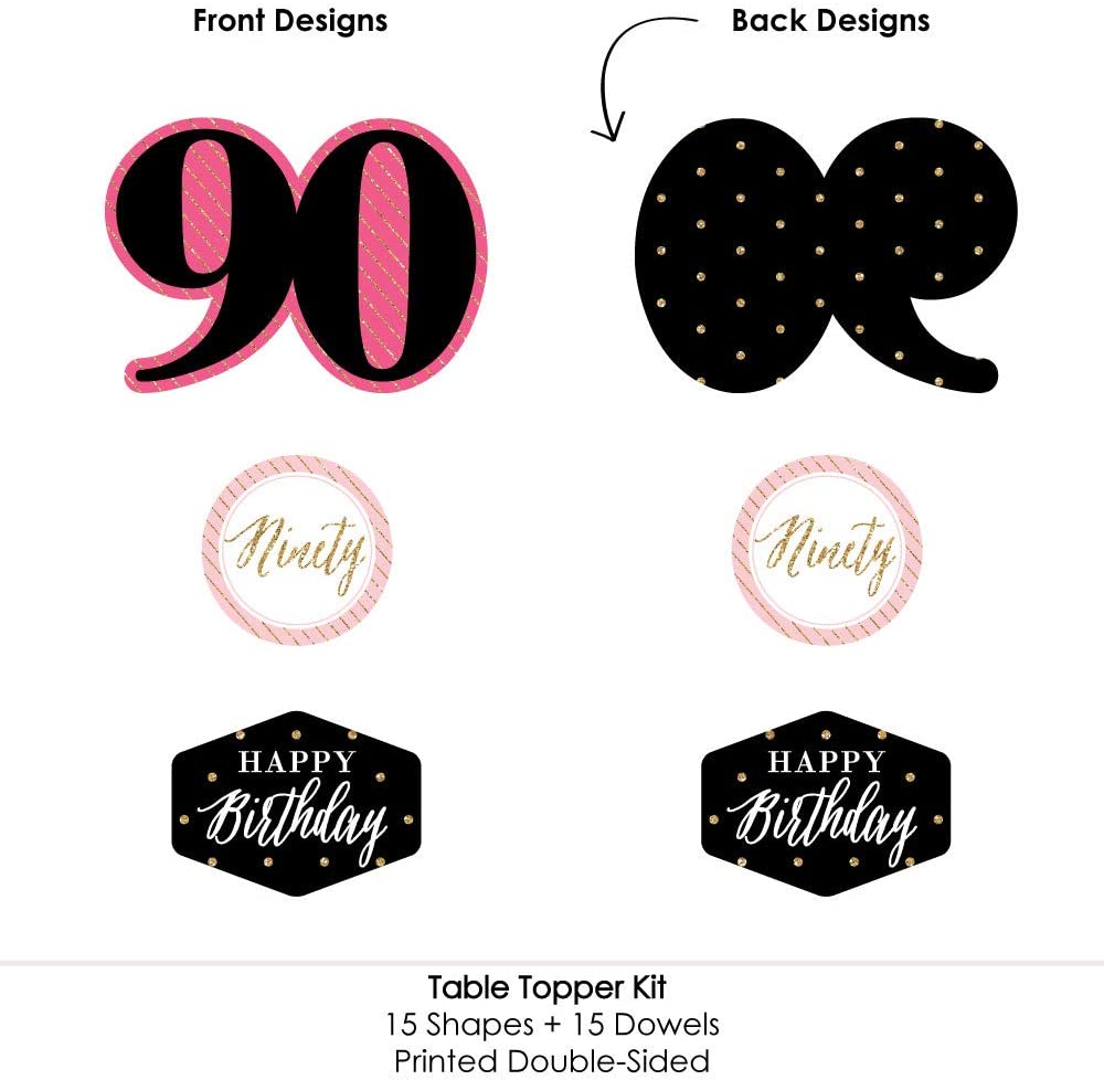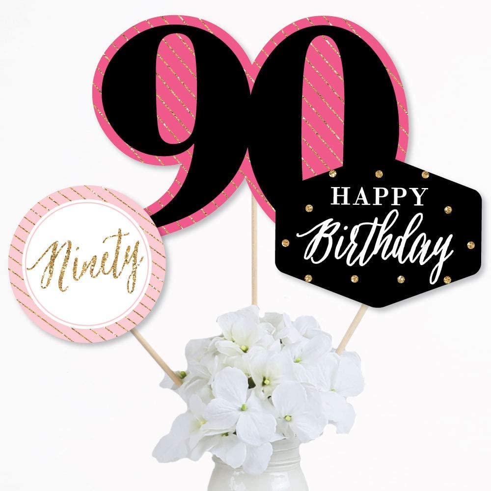 Chic 90th Birthday - Pink, Black and Gold - Birthday Party Centerpiece Sticks - Table Toppers - Set of 15 is backordered and will ship as soon as it is back in stock.