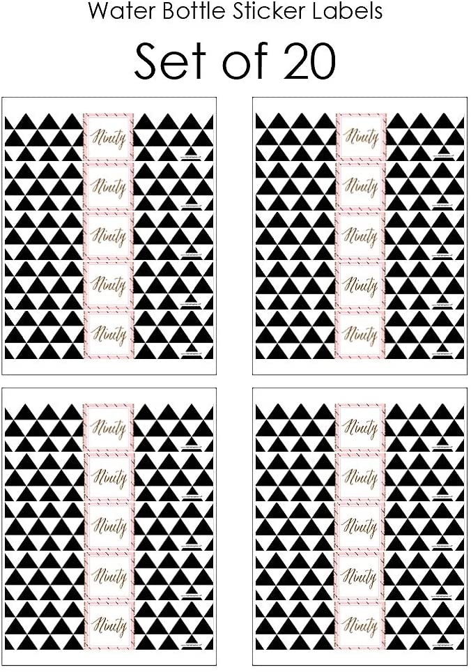 Chic 90th Birthday - Pink, Black and Gold - Birthday Party Water Bottle Sticker Labels - Set of 20 is backordered and will ship as soon as it is back in stock.