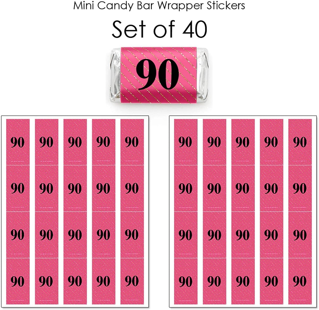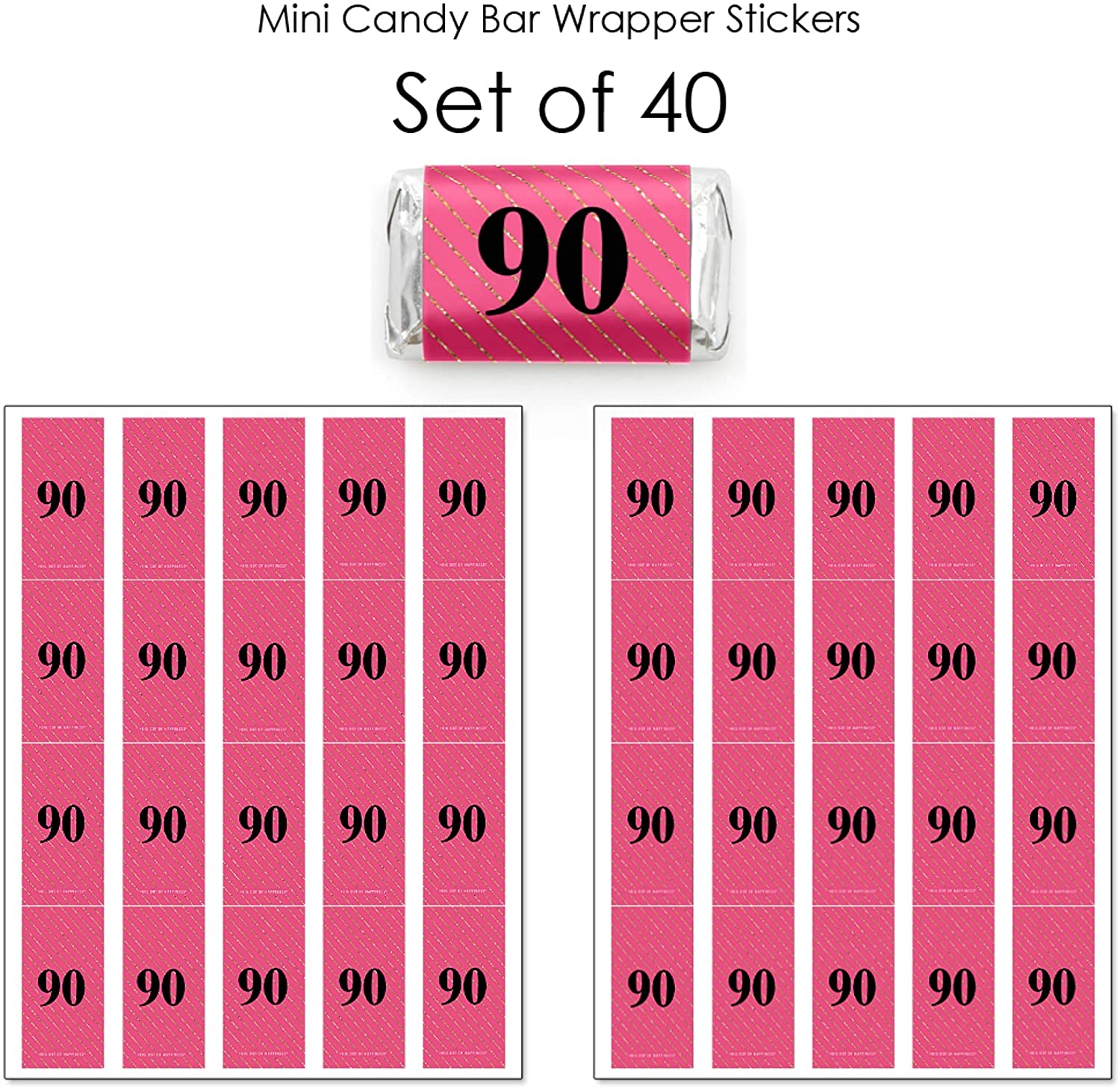Chic 90th Birthday - Pink, Black and Gold - Mini Candy Bar Wrapper Stickers - Birthday Party Small Favors - 40 Count is backordered and will ship as soon as it is back in stock.