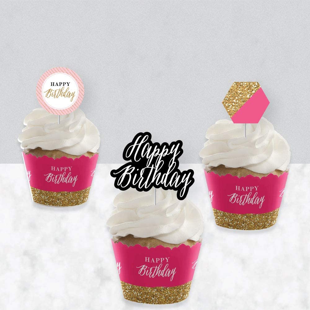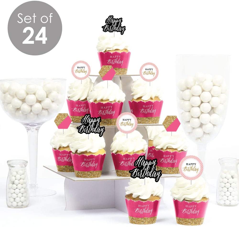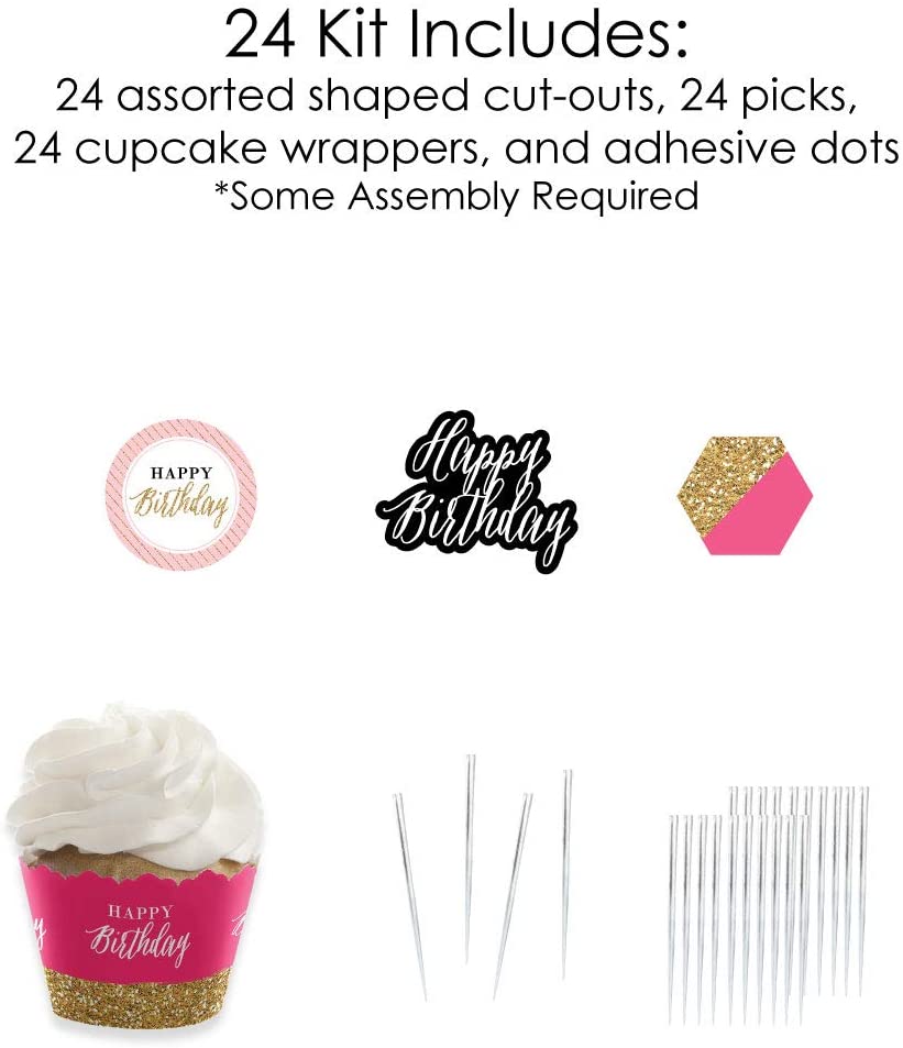 Chic Happy Birthday - Pink, Black and Gold - Cupcake Decoration - Birthday Party Cupcake Wrappers and Treat Picks Kit - Set of 24 is backordered and will ship as soon as it is back in stock.