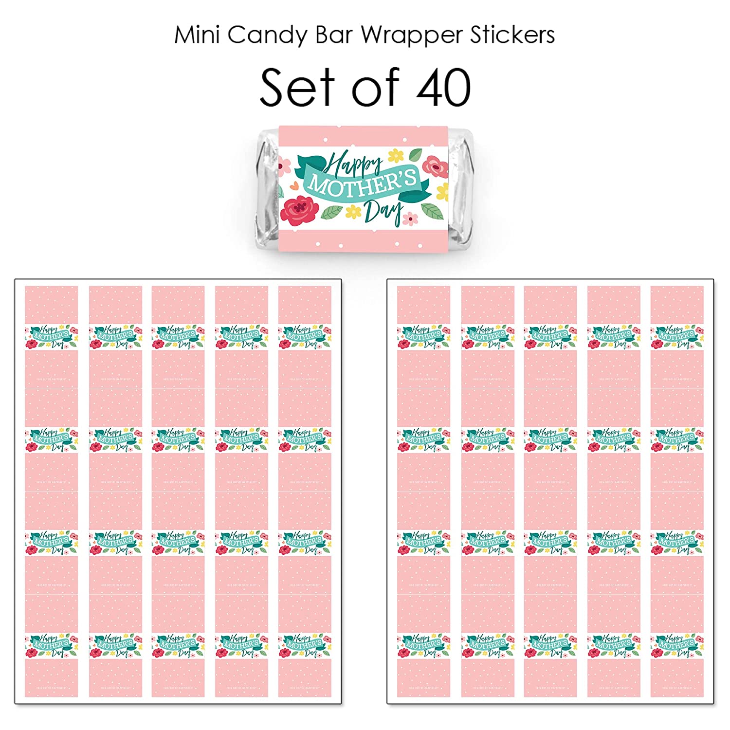 Colorful Floral Happy Mother's Day - Mini Candy Bar Wrapper Stickers - We Love Mom Party Small Favors - 40 Count is backordered and will ship as soon as it is back in stock.