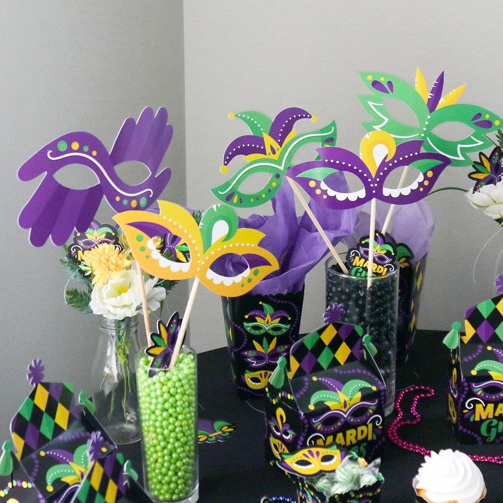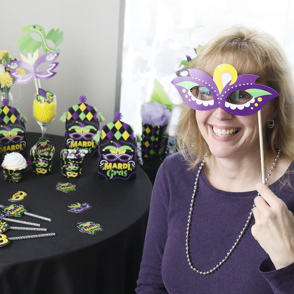 Colorful Mardi Gras Mask Glasses - Paper Card Stock Masquerade Party Photo Booth Props Kit - 10 Count is backordered and will ship as soon as it is back in stock.
