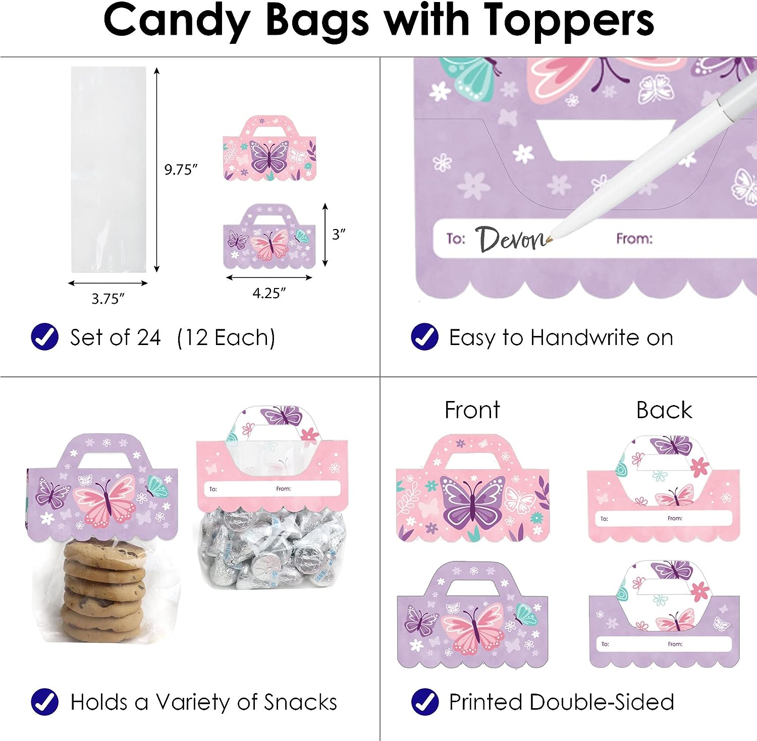 Beautiful Butterfly - DIY Floral Baby Shower or Birthday Party Clear Goodie Favor Bag Labels - Candy Bags with Toppers - Set of 24 is backordered and will ship as soon as it is back in stock.