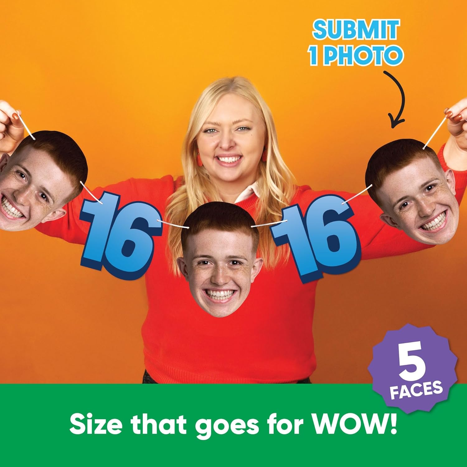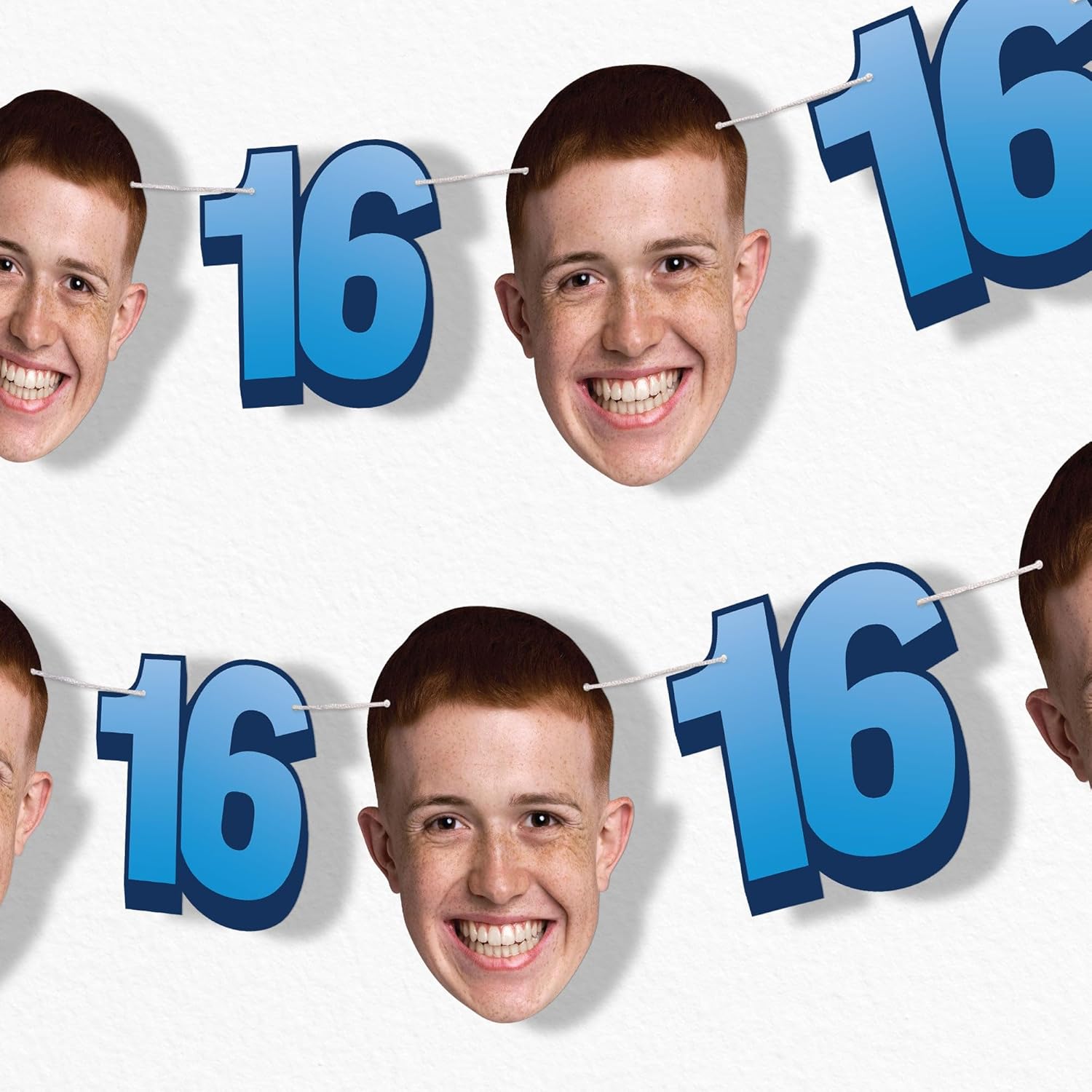 Custom Blue 16th Birthday Face Cut Out Garland Banner is backordered and will ship as soon as it is back in stock.