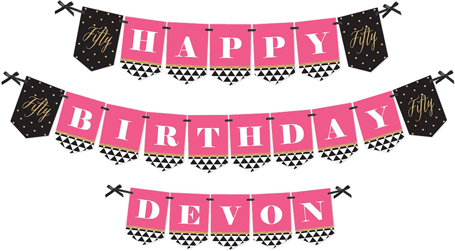 Custom Chic 50th Birthday - Pink, Black and Gold - Personalized Birthday Party Bunting Banner & Decoration - Happy Birthday Custom Name Banner is backordered and will ship as soon as it is back in stock.