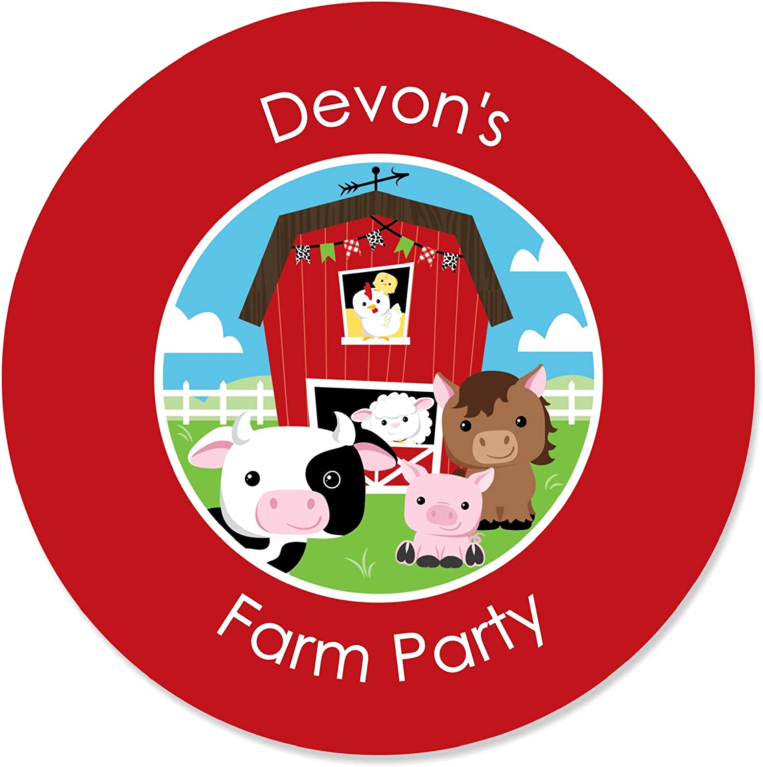 Custom Farm Animals - Personalized Baby Shower or Birthday Party Circle Sticker Labels - 24 Count is backordered and will ship as soon as it is back in stock.