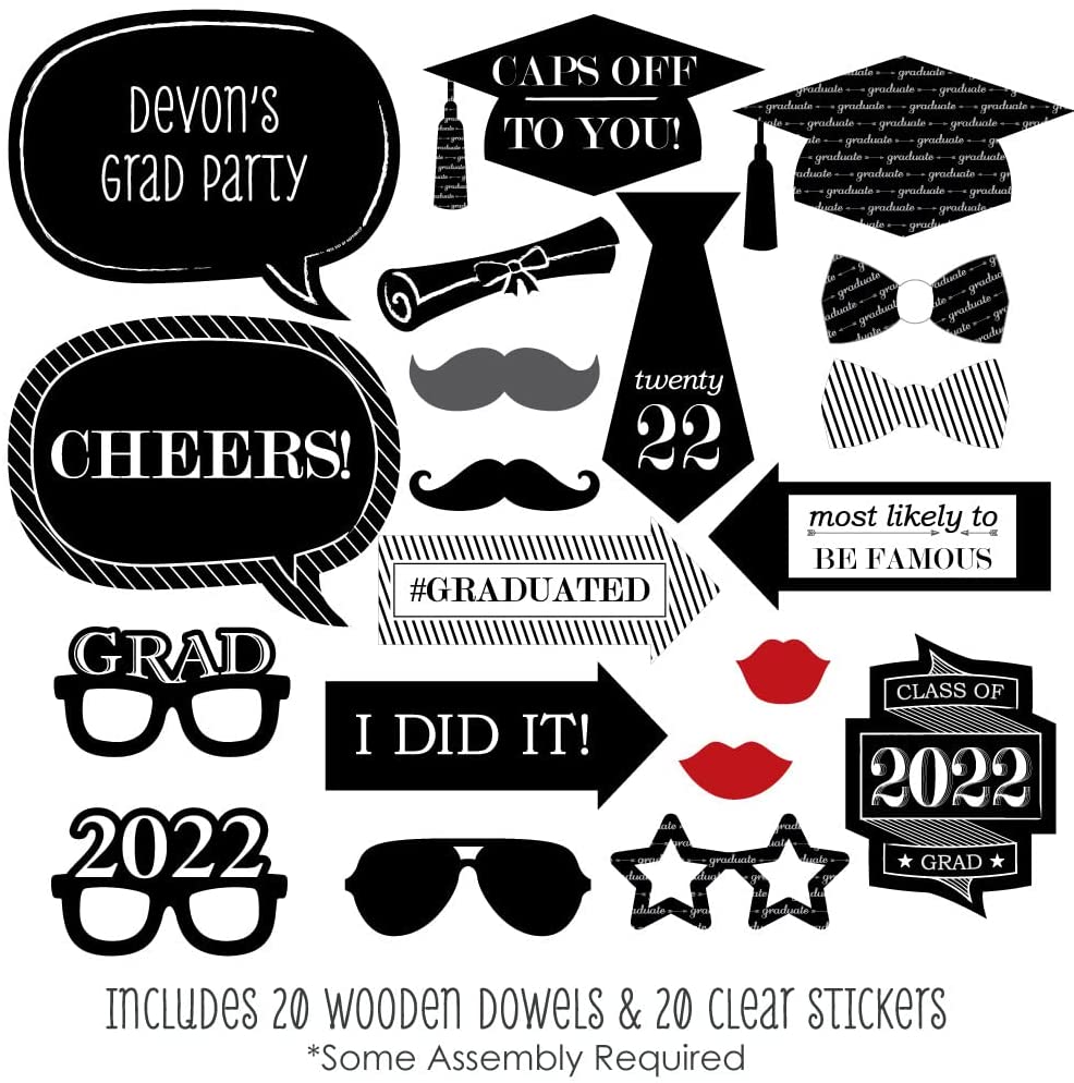 Custom Graduation Cheers Photo Booth Props - Personalized 2022 Graduation Party Supplies - 20 Selfie Props is backordered and will ship as soon as it is back in stock.