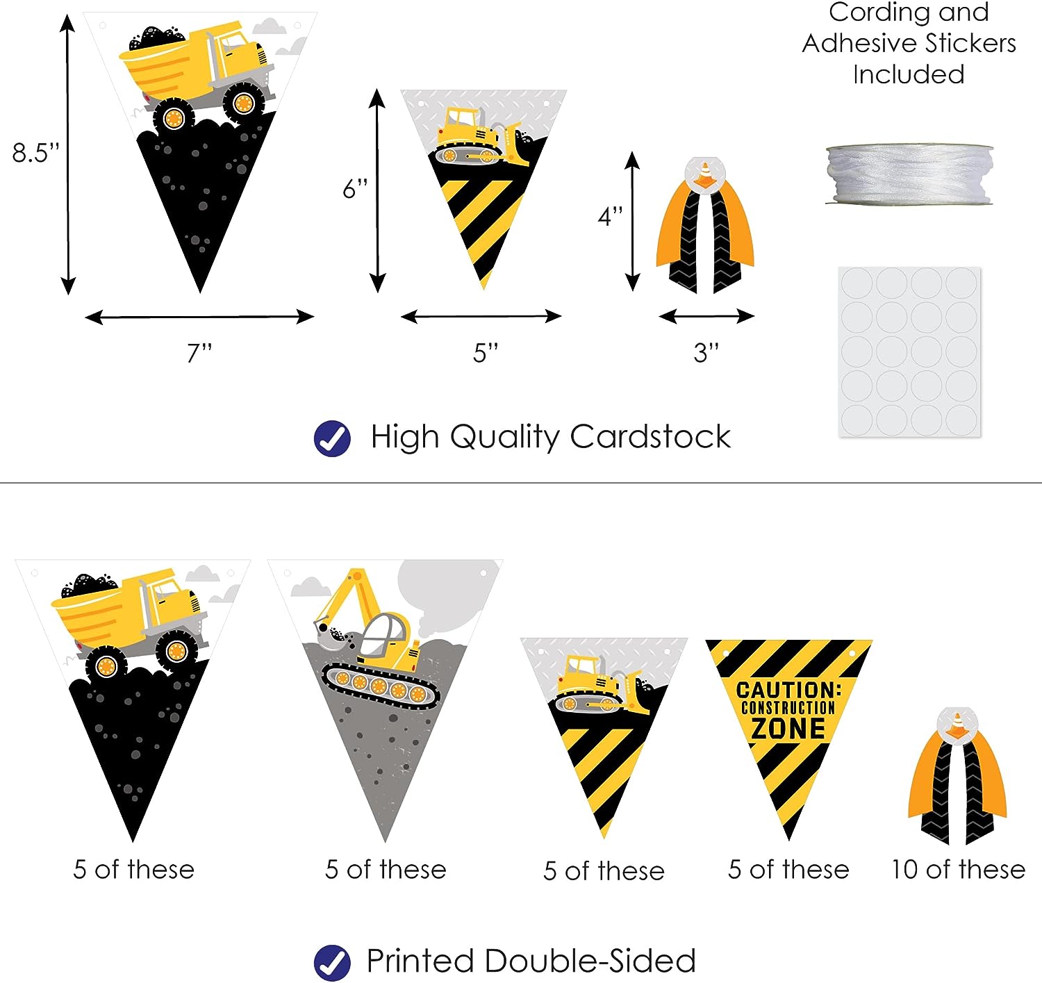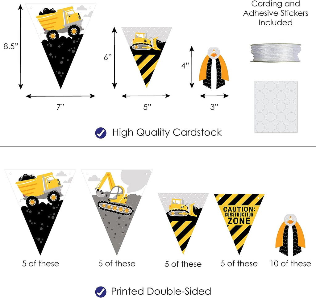 Dig It - Construction Party Zone - DIY Baby Shower or Birthday Party Pennant Garland Decoration - Triangle Banner - 30 Pieces